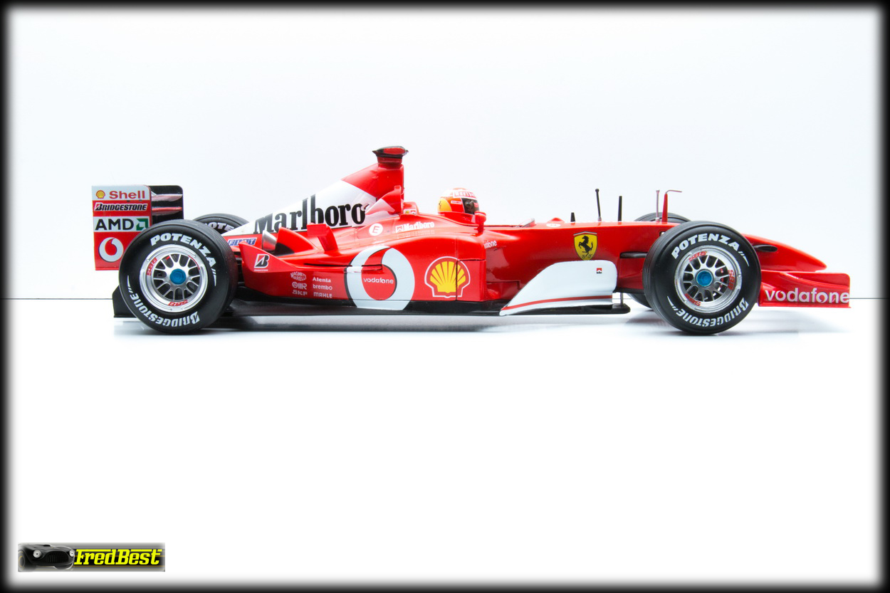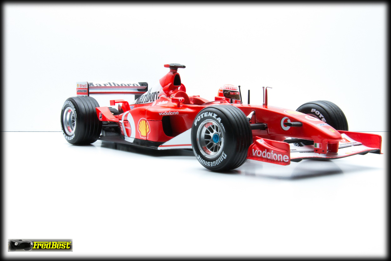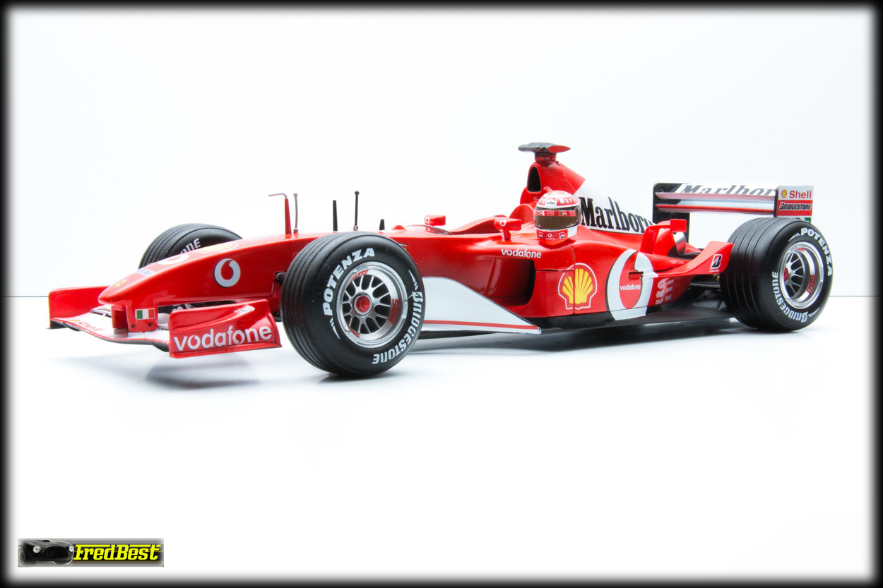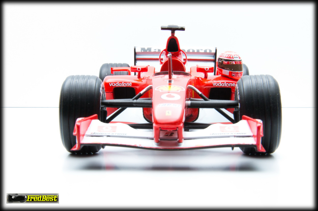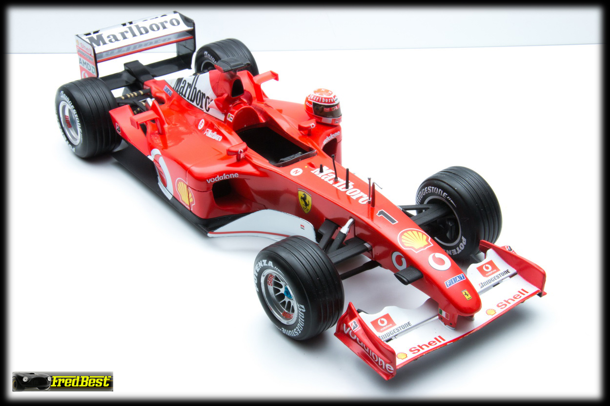 Reproduite par Hotweels, référence 54626, Michael Schumacher. Pilote retiré, casque scotché, ajout de décalcomanies Marlboro.