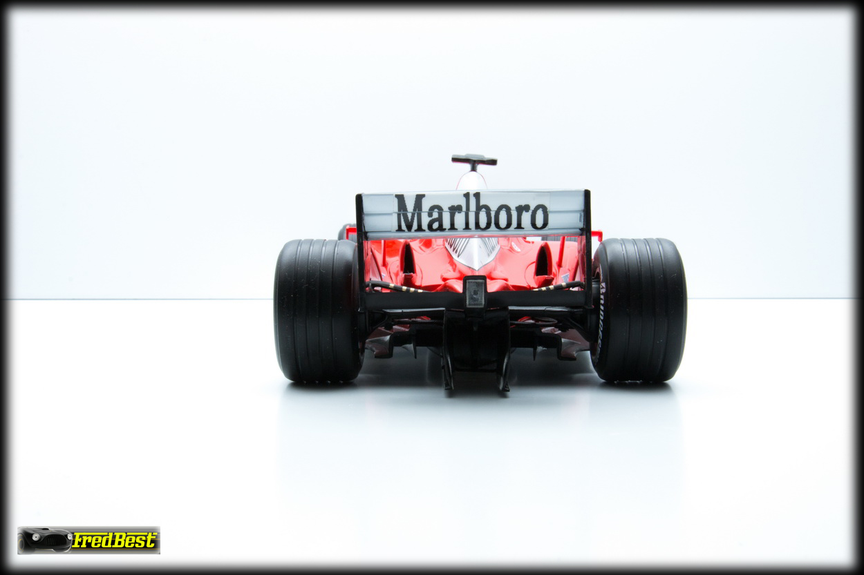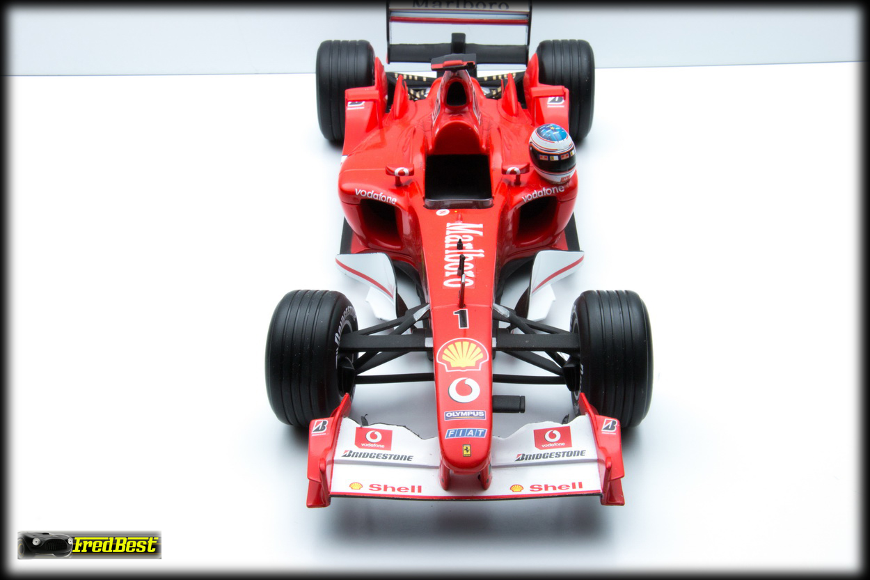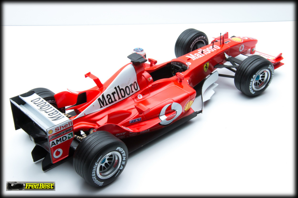 Reproduite par Hotweels, référence B1023, Michael Schumacher. Pilote retiré, casque scotché, ajout d'autocollants Marlboro faits maison.