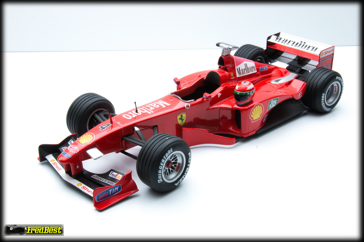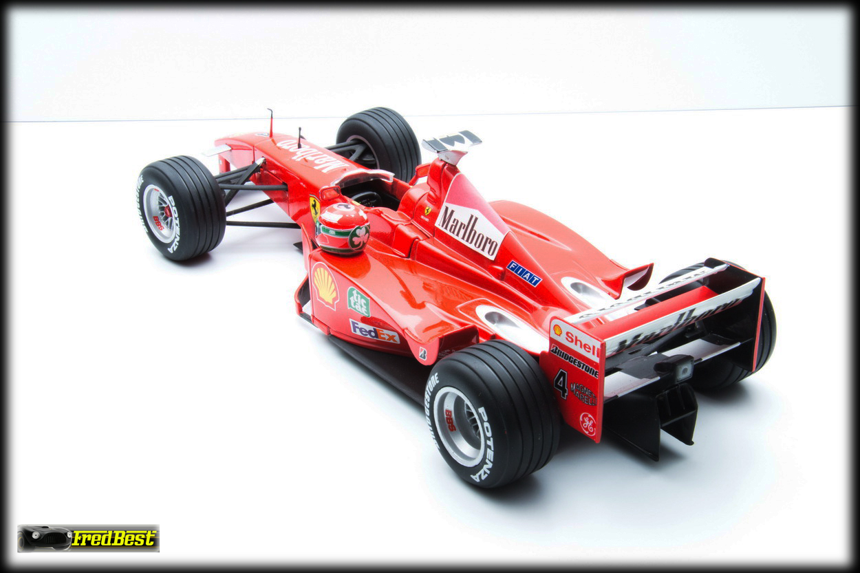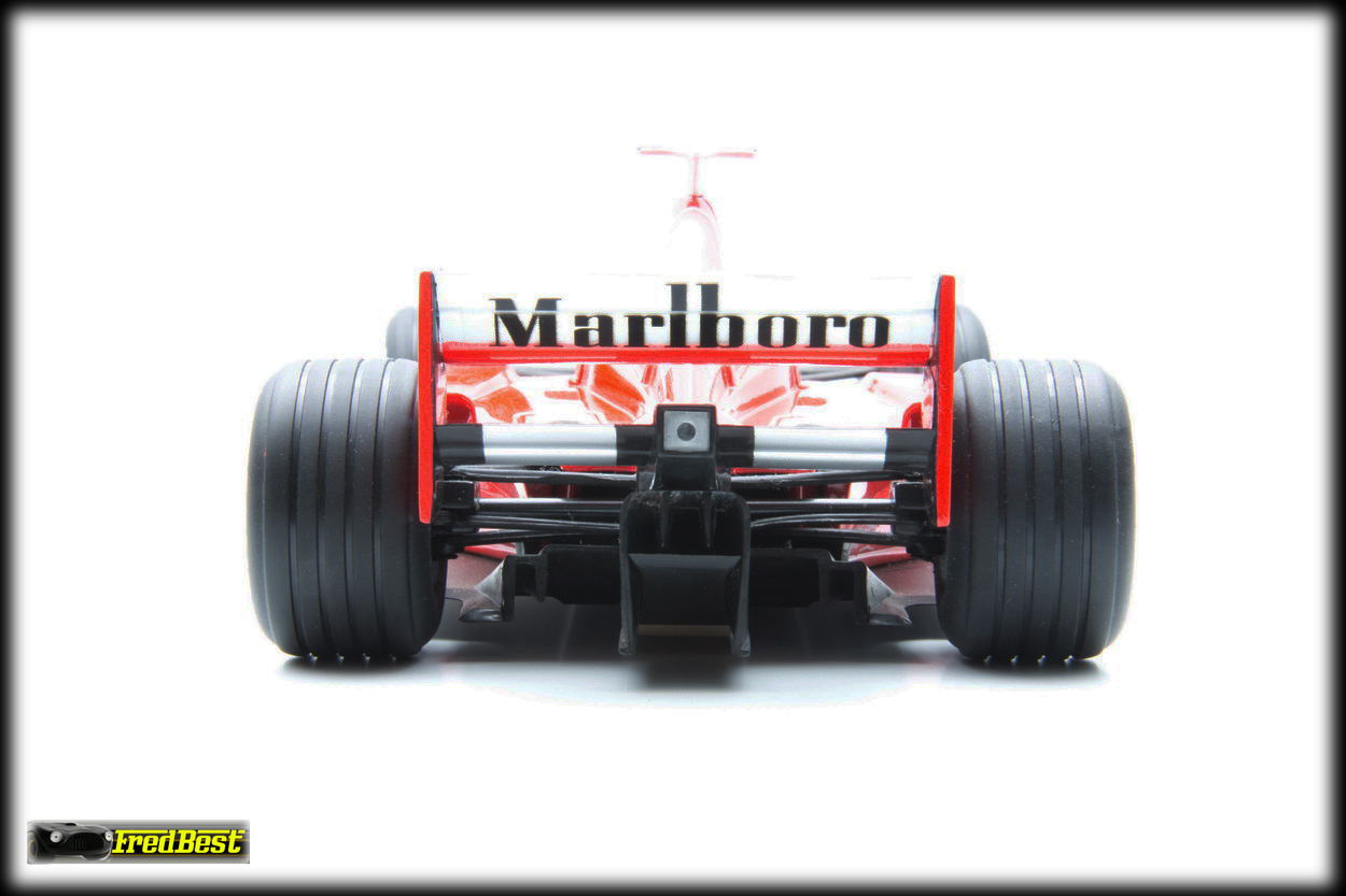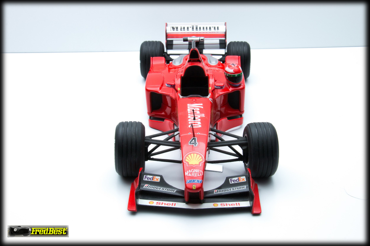 Reproduite par Hotweels, référence 24629, Eddy Irvine. Piote retiré, casque scotché, ajout d'autocollants Marlboro faits maison.