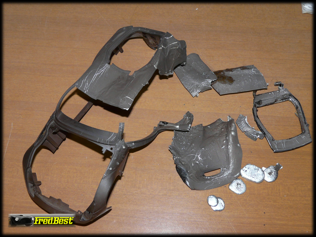 bonne nouvelle c'est que le capot avant et le coffre arrière sont en zamac, la première chose à vérifier pendant le démontage de la belle