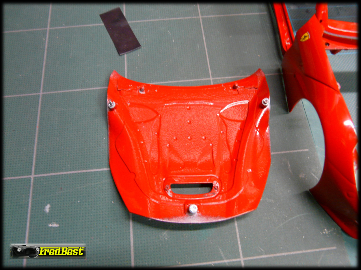 Pour le capot avant par contre, ça coince ! Si le support plastique maintenant les pattes de charnière est bien là, les fameuses pattes n'existent