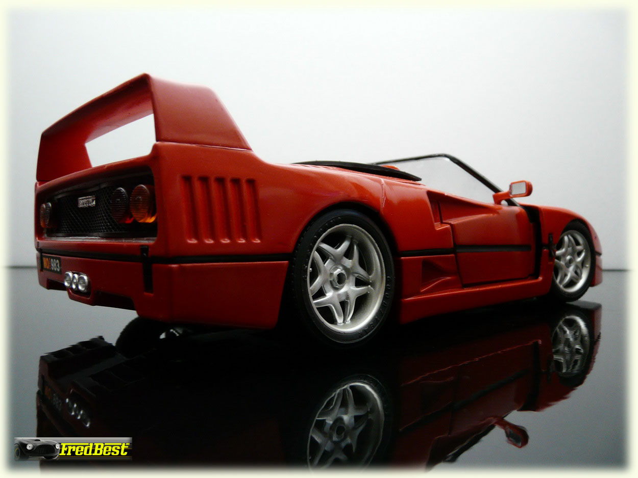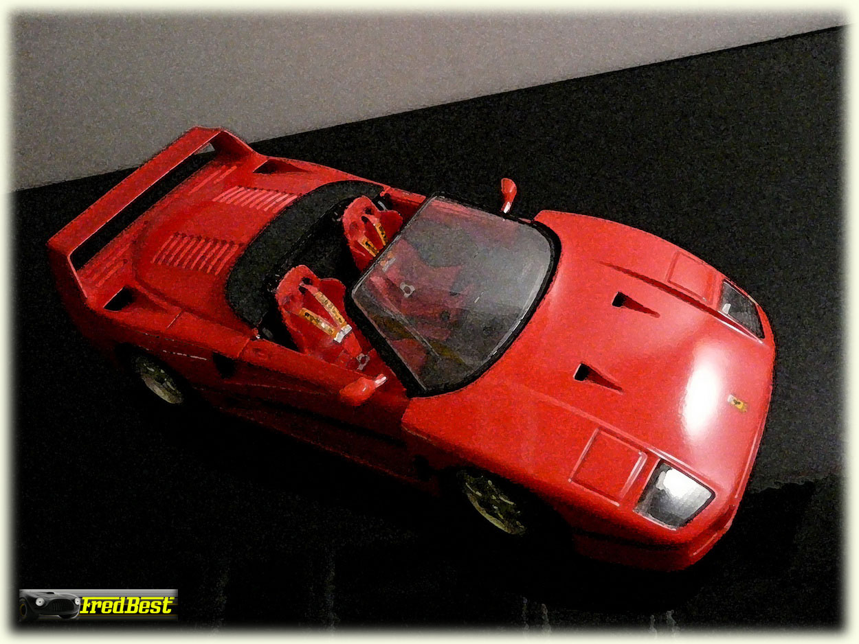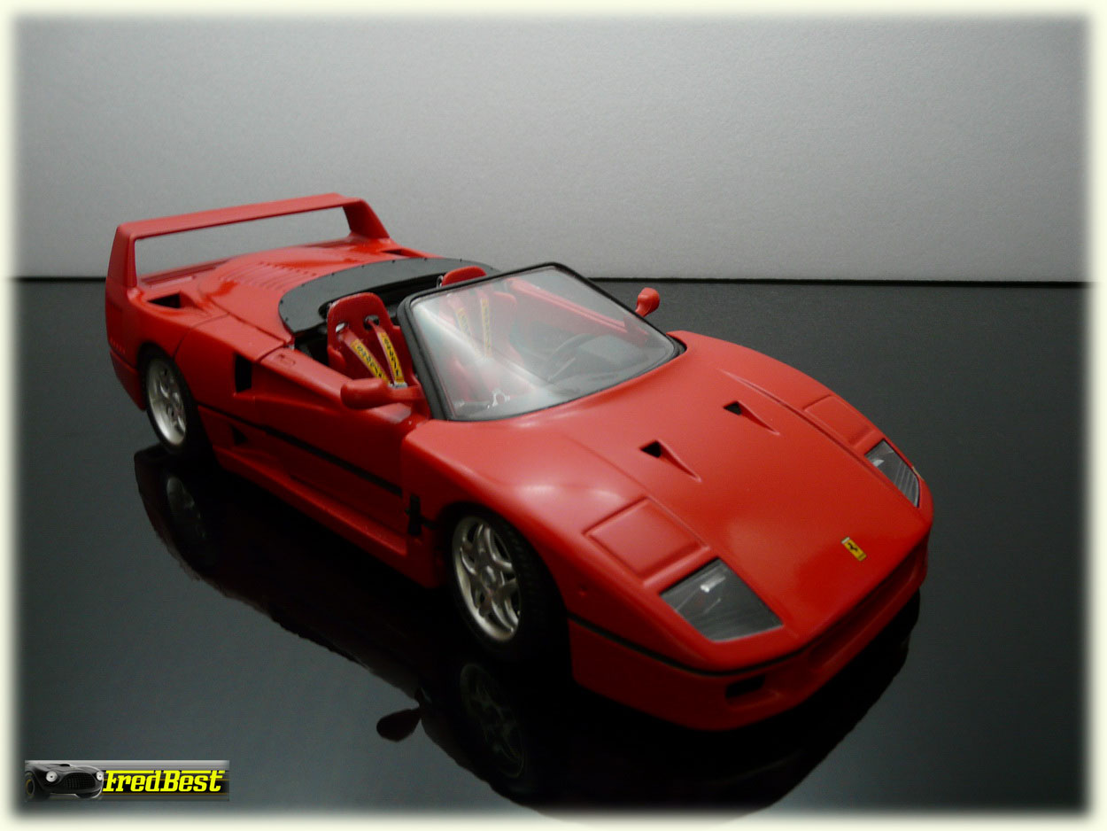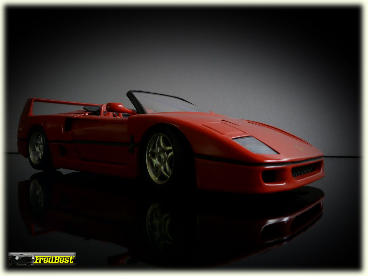 C'est avec des restes de Burago que j'ai élaboré cette version spider de la célèbre F40 de Ferrari, elle possède les jantes de son héritière la F50.
