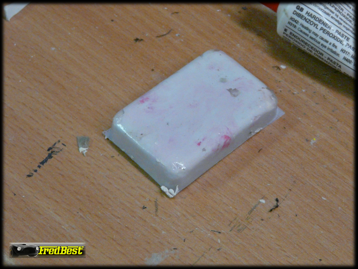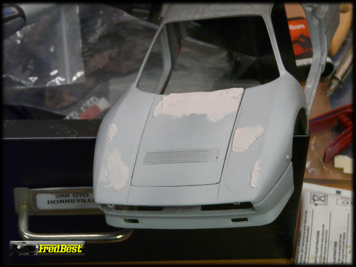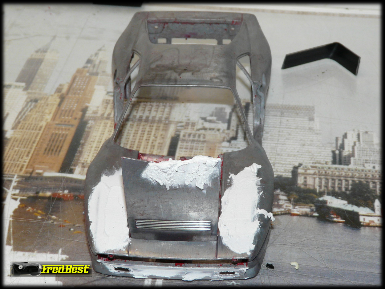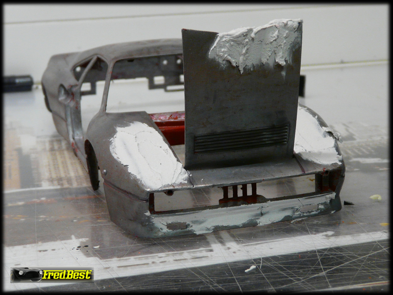 Création en mastic de la pièce destinée à recouvrir le capot moteur.
