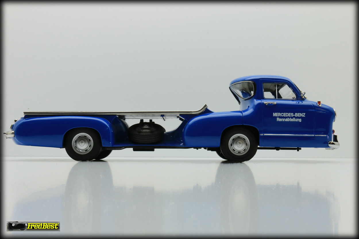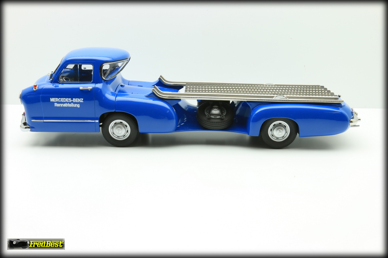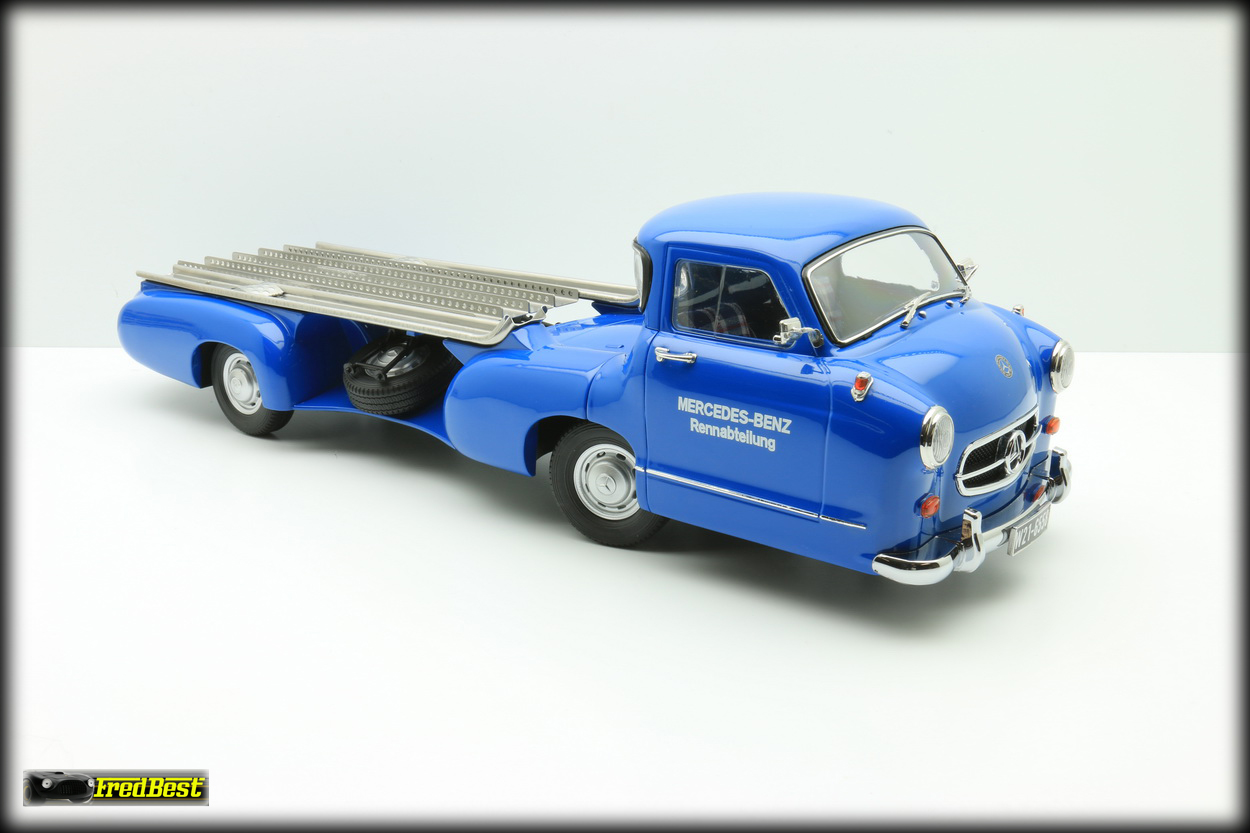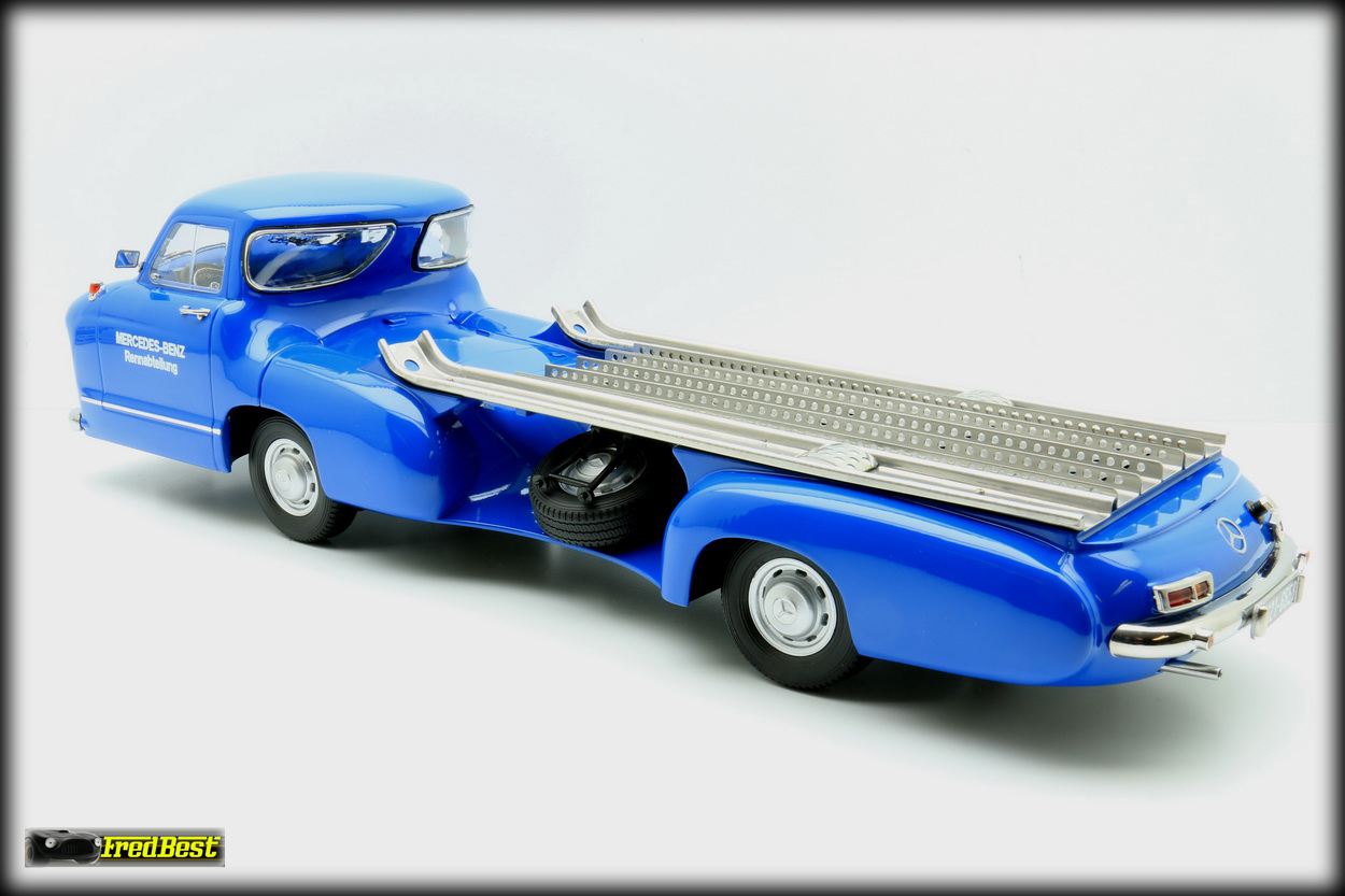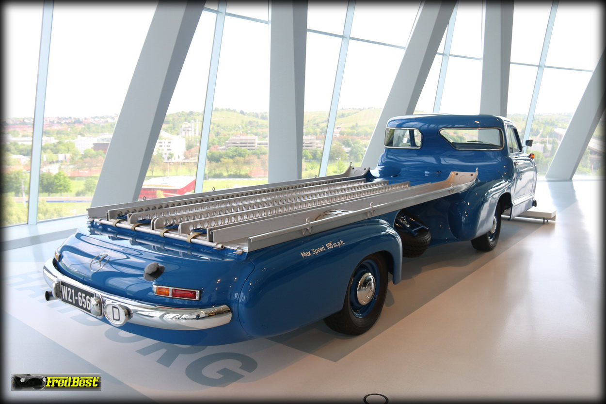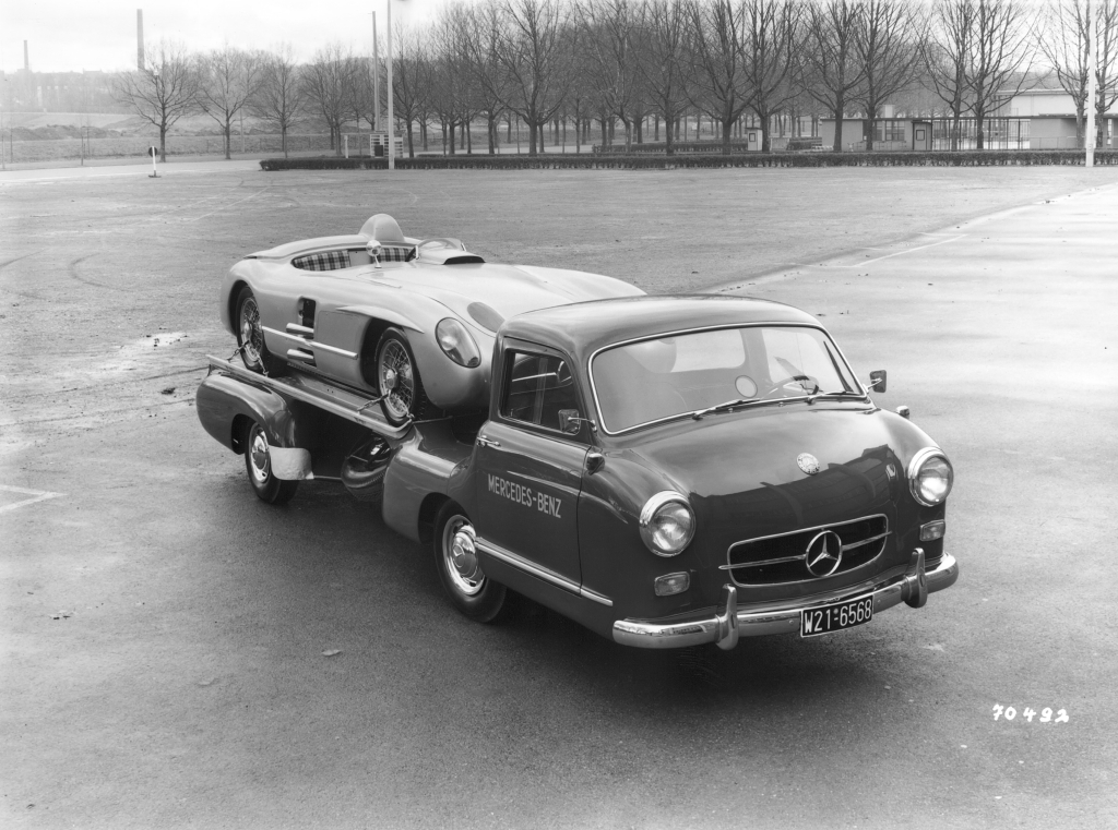 Afin de transporter d'une course à une autre ses formules 1, les redoutables W196R, ou ses bi-places de compétition, les 300 SLR, Mercedes fait construire en moins de quatre mois, début 1954,