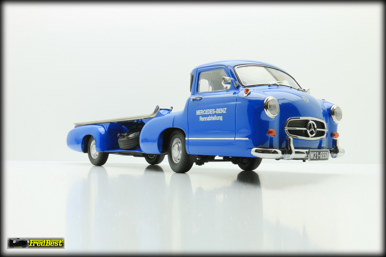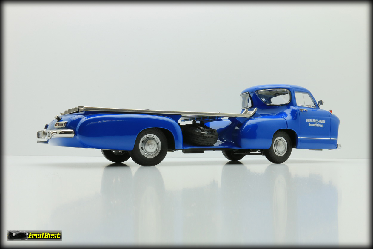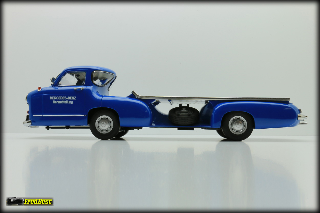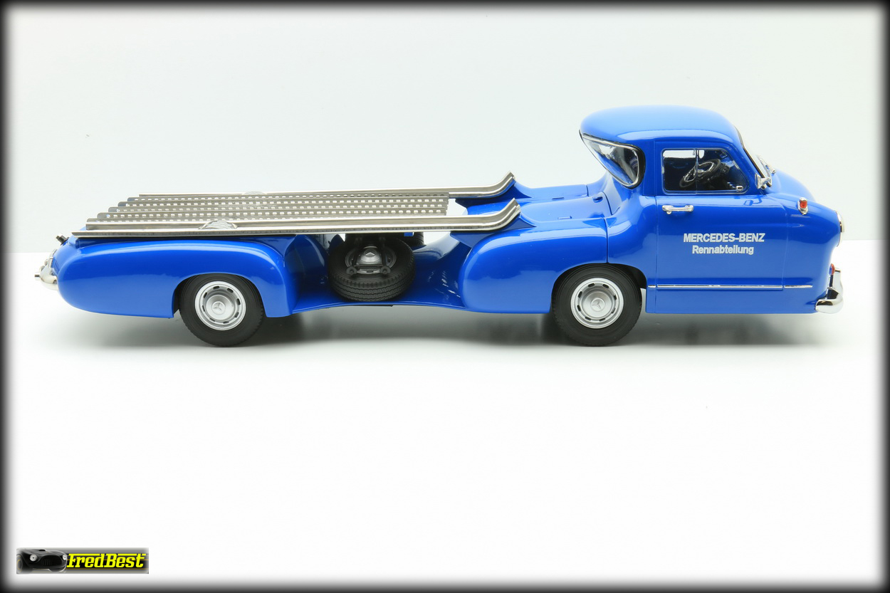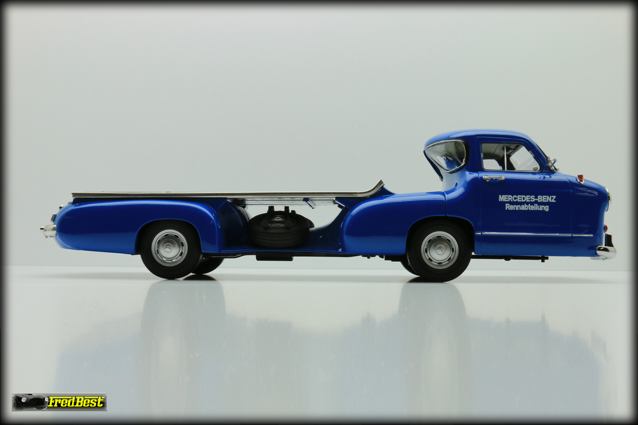 Afin de transporter d'une course à une autre ses formules 1, les redoutables W196R, ou ses bi-places de compétition, les 300 SLR, Mercedes fait construire en moins de quatre mois, début 1954,