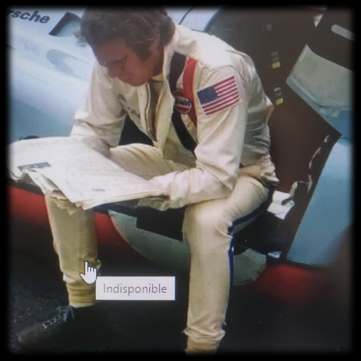 jamais à l'écran avec ce pantalon. Il s'agit certainement d'une des combinaisons "officielles" de McQueen lorsqu'il a couru à Sebring sur Porsche 908/2, endroit où la bande bleue était présente, merci à