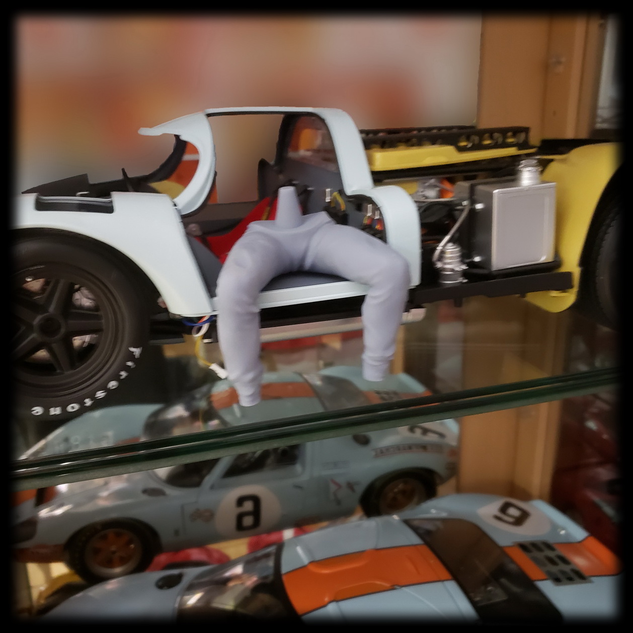 La deuxième déception est au niveau de la jonction en bas du capot : lorsqu'on le place sur la carrosserie, il n'y a pas assez d'orange et on voit la démarcation des deux pièces en bleu.