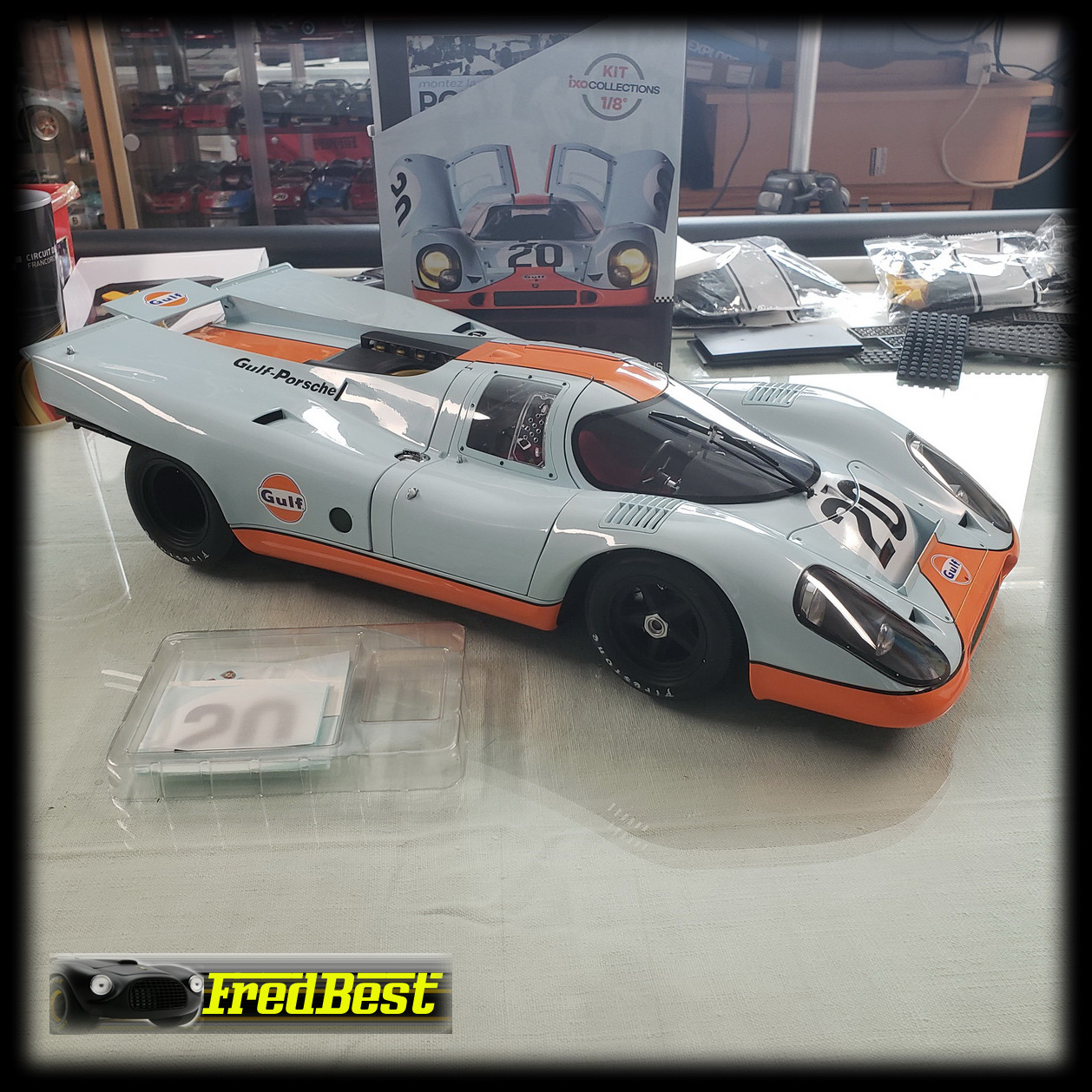 Voilà, après plus de deux ans de montage, la Porsche 917 de Steve McQueen qu'il utilise dans son film "Le Mans" est enfin terminée, je peux vous dire qu'elle a fière allure à cette échelle...