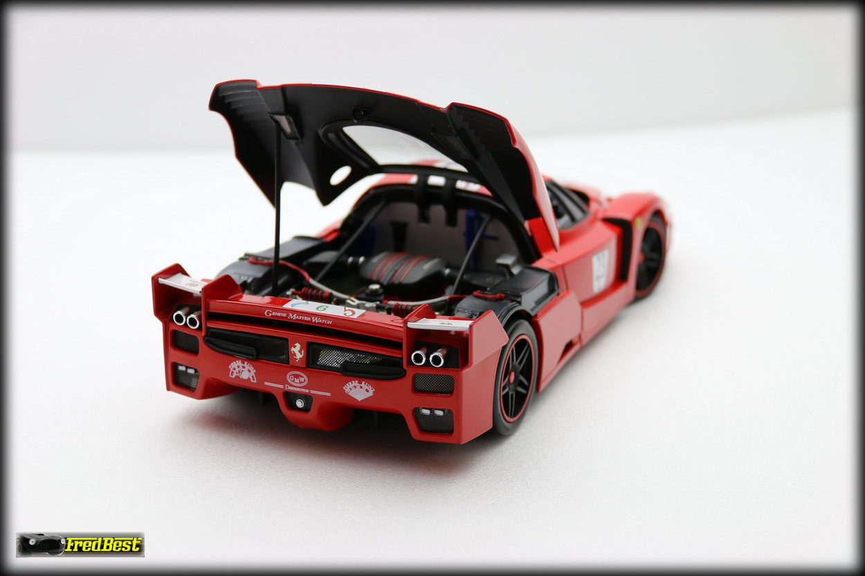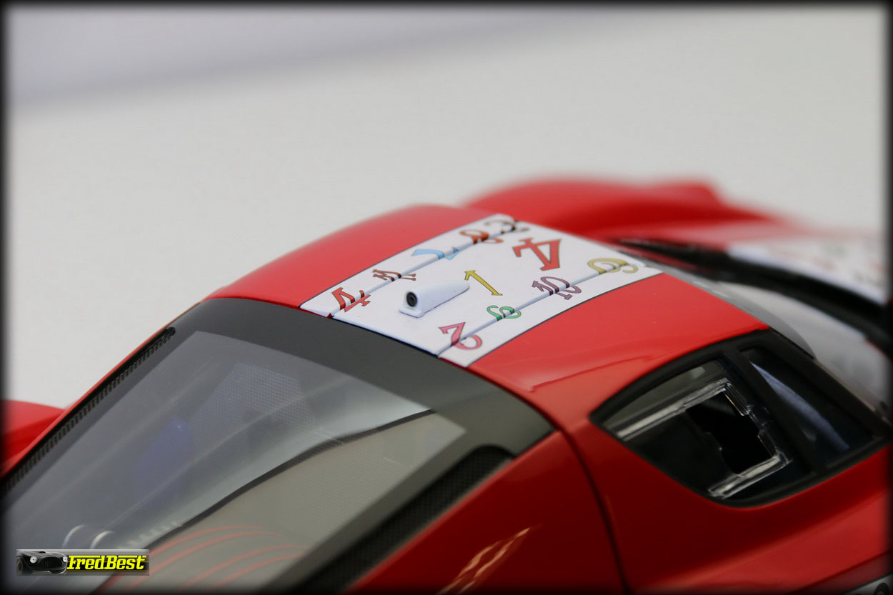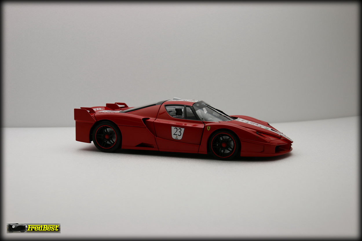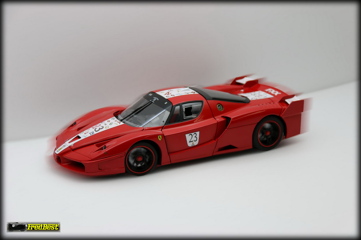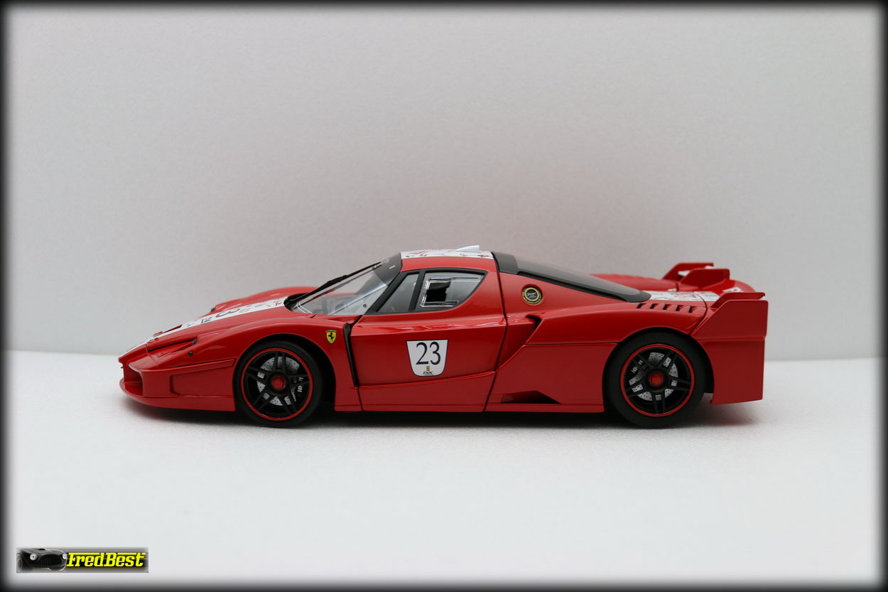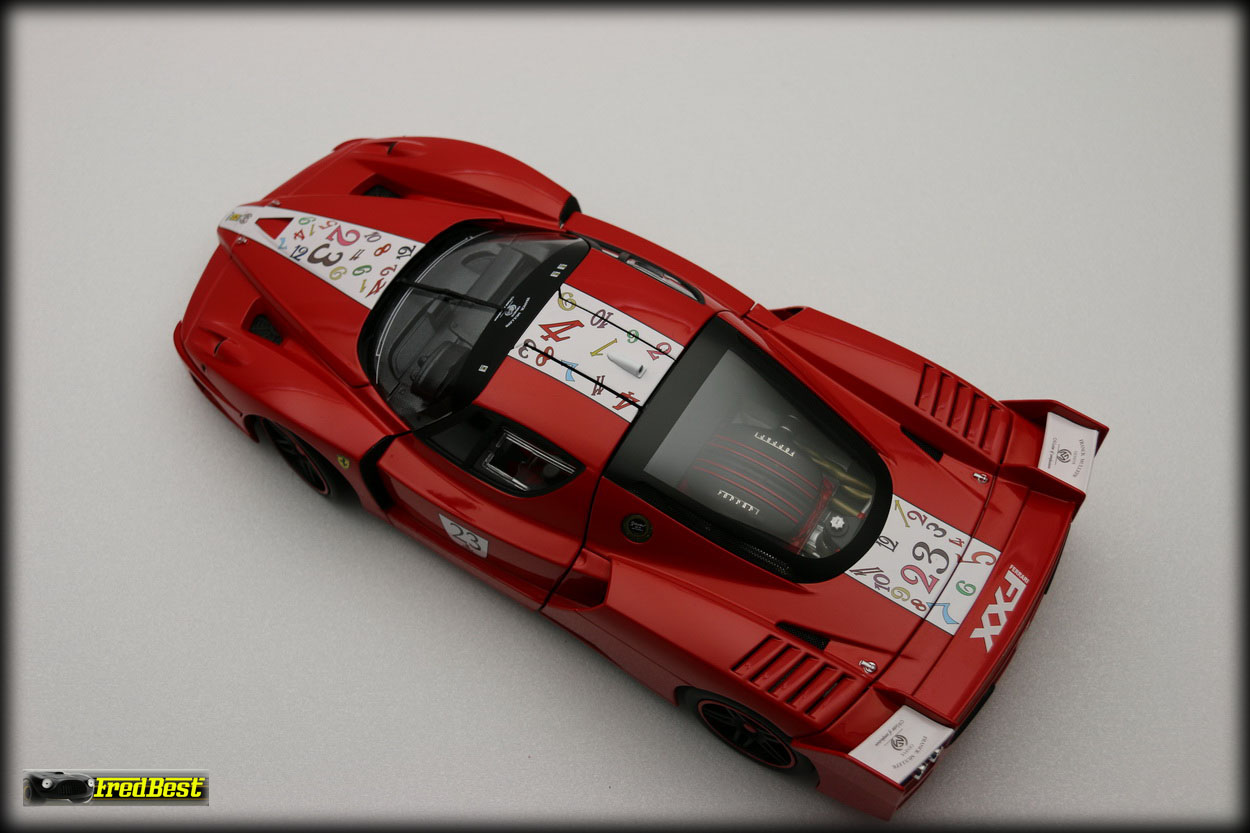 Voici la FXX N°23 sponsorisée Franck Muller Geneve, fidèlement reproduite par Hotweels en version Elite. Un petit bémol sur la teinte qui ici est en Rosso Corsa alors que la voiture d'origine est peinte en Rosso Scuderia, légèrement plus orangée.