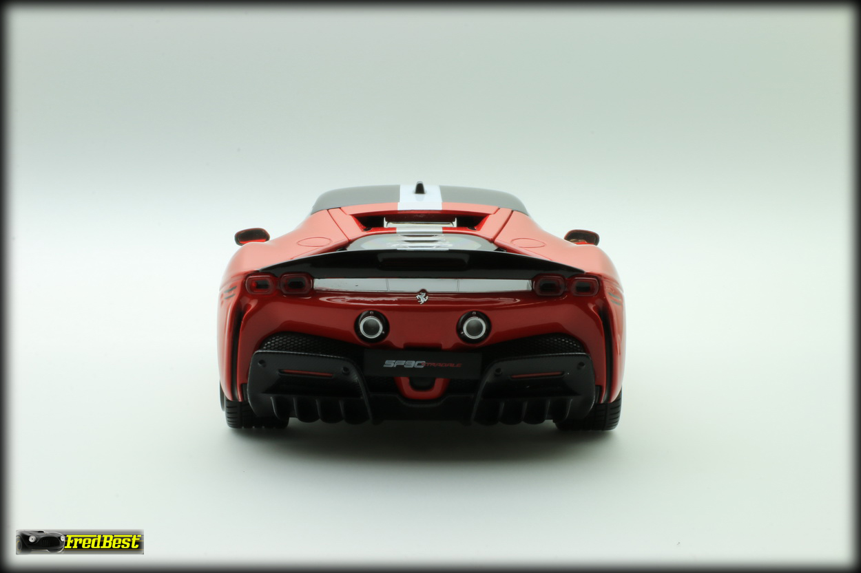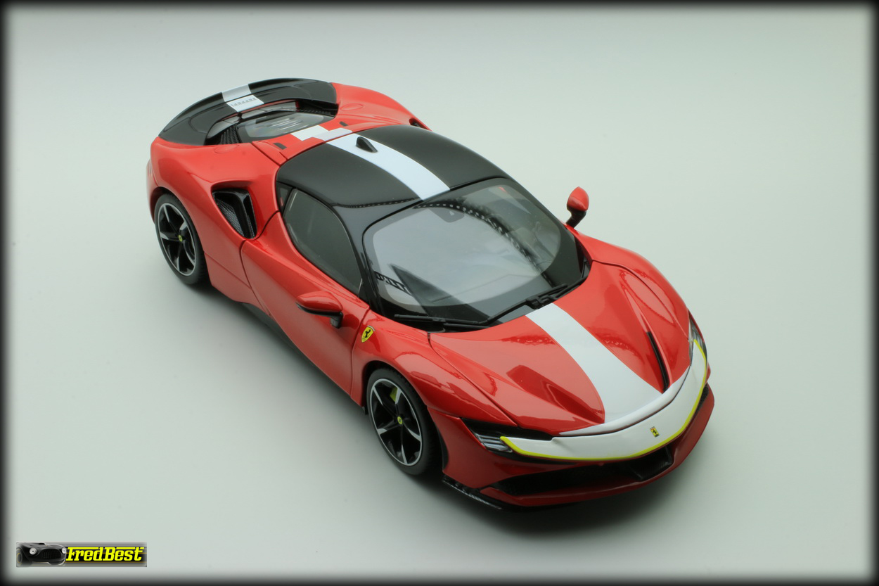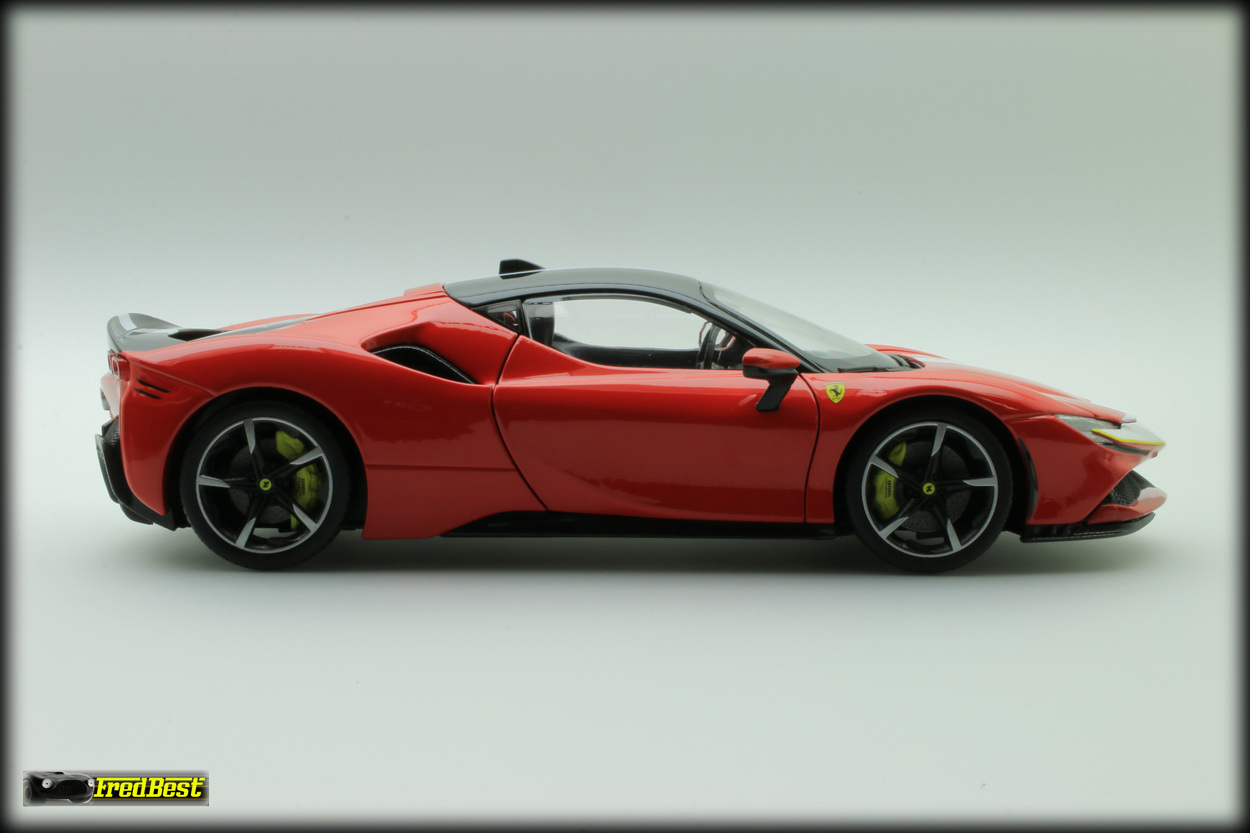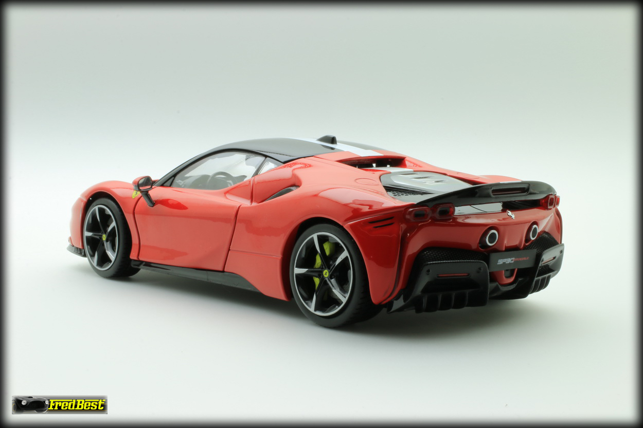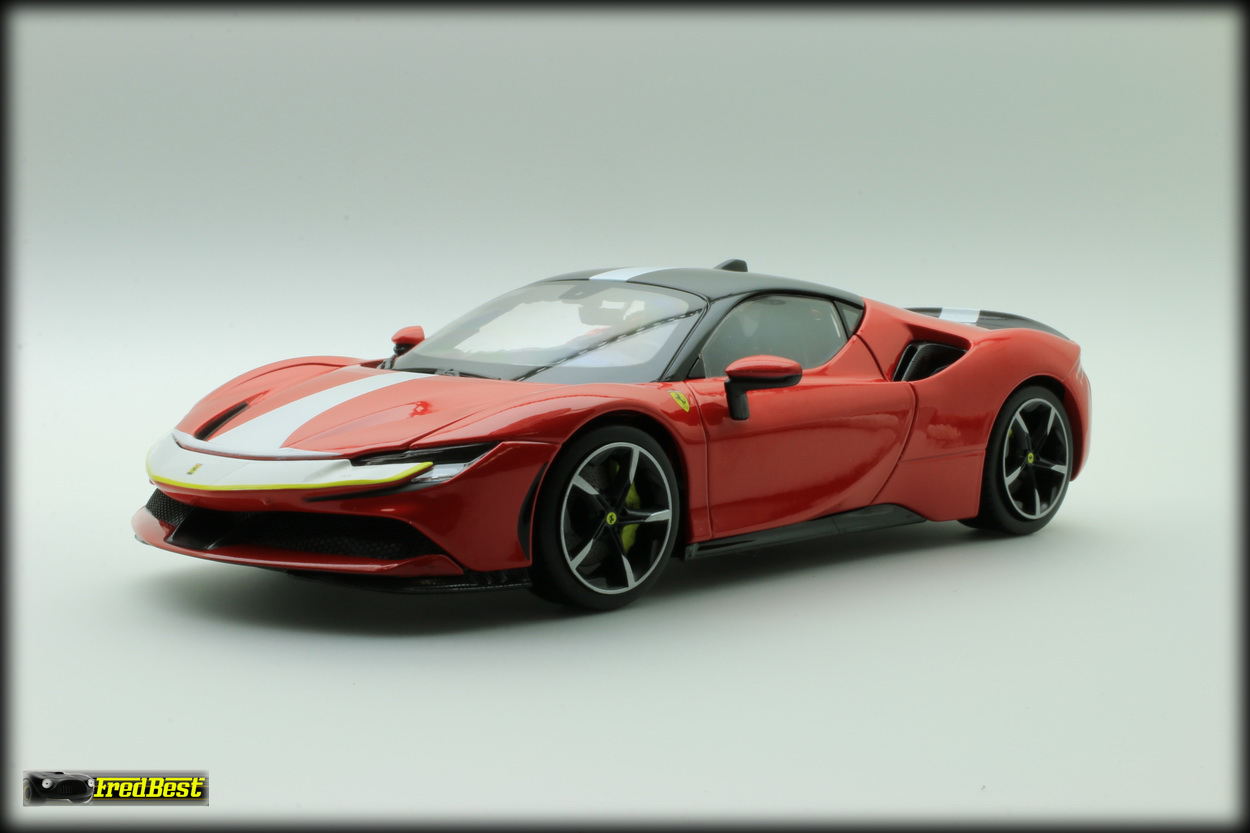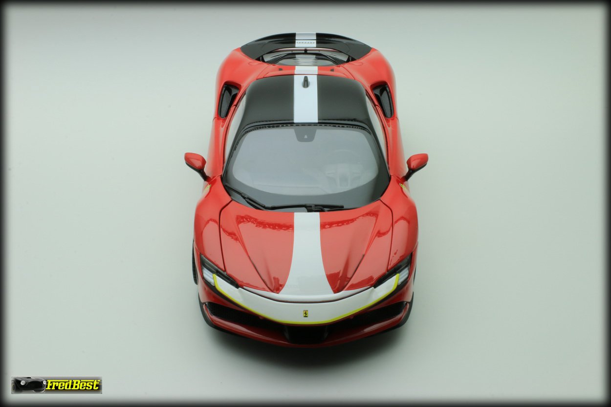 Vous allez pouvoir retrouver sur cette page une SF90 avec son pack Assetto Fiorano, reproduite au 1/18 par Bburago en finition "Signature", le haut gamme de la marque.