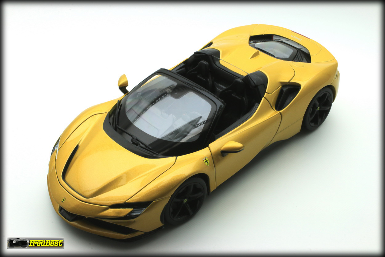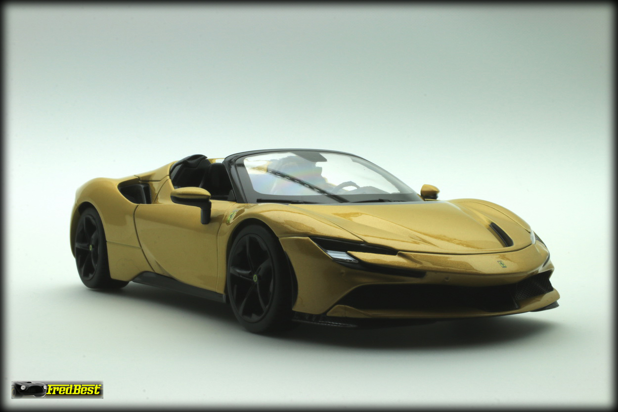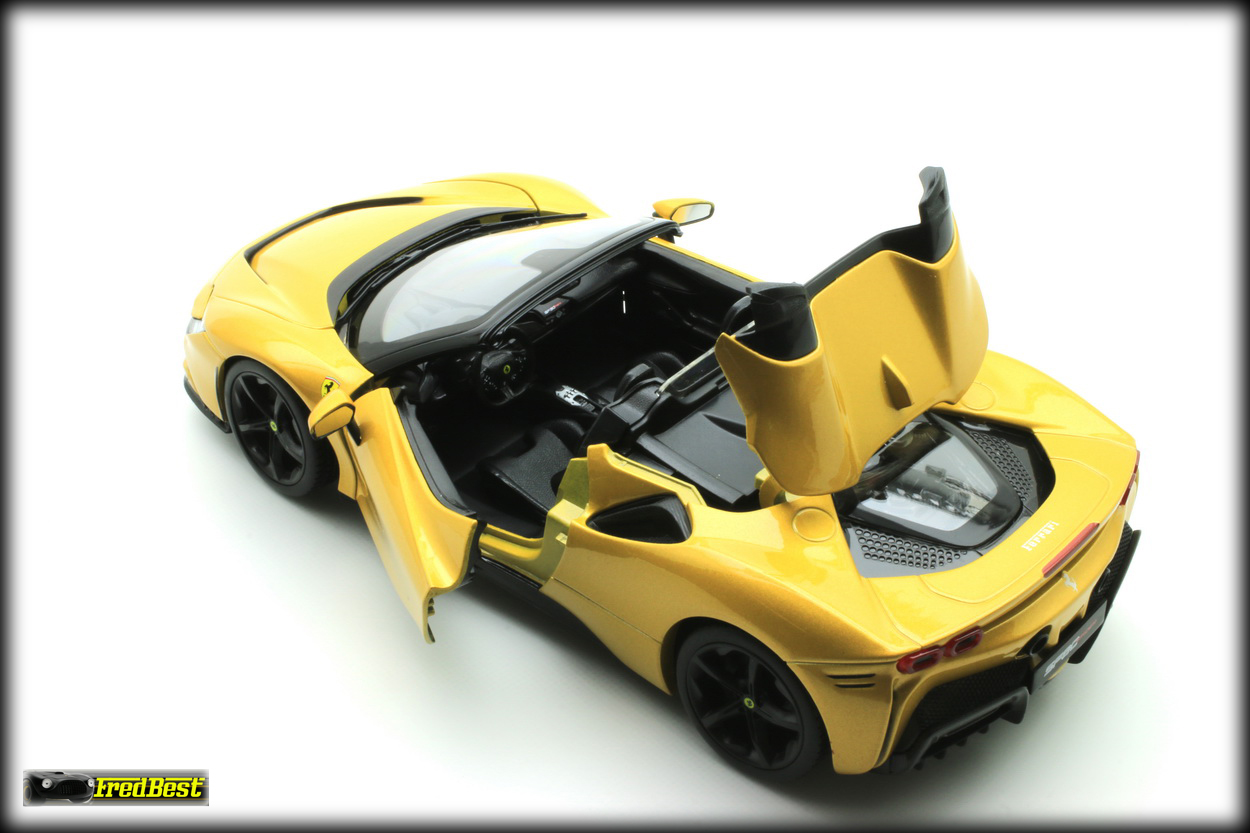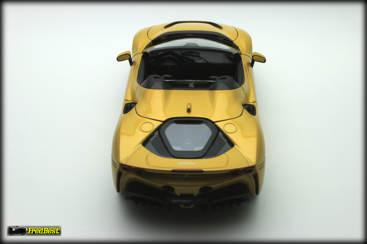 Disponible depuis mai 2022, voici la SF90 Spider vue par Bburago en finition "Race & Play". La belle surprise étant le capot de protection du toit rétractable qui s'ouvre.