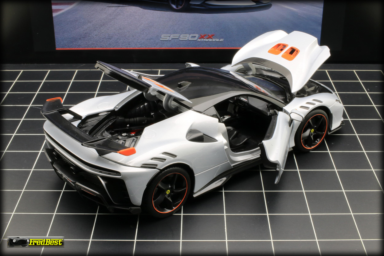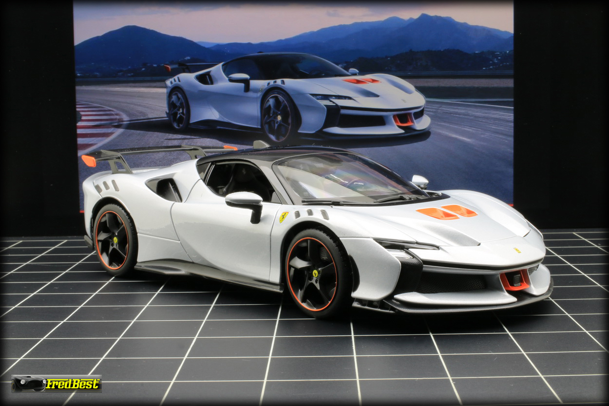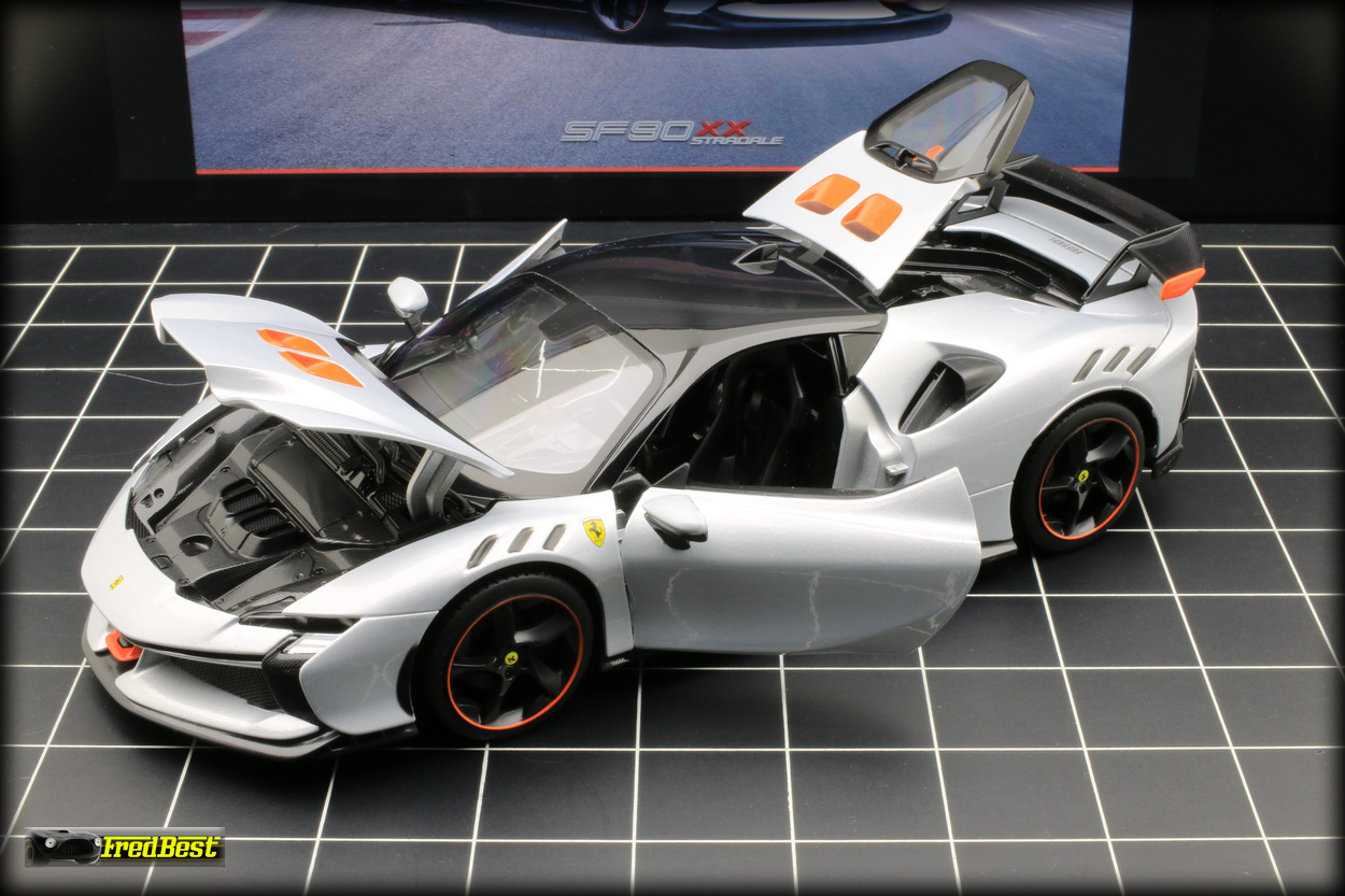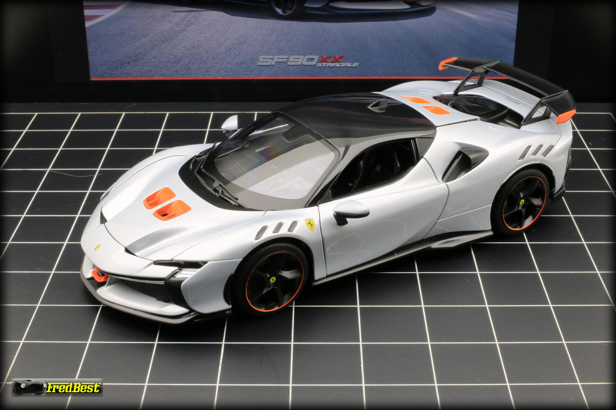 Disponible depuis fin janvier 2025, voici enfin la SF90 XX Stradale promise par Bburago depuis plus d'un an. En attendant les futures versions "Signature" la voici en finition "Race & Play".