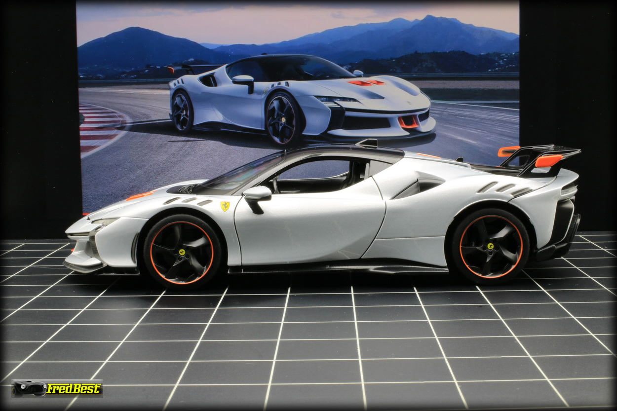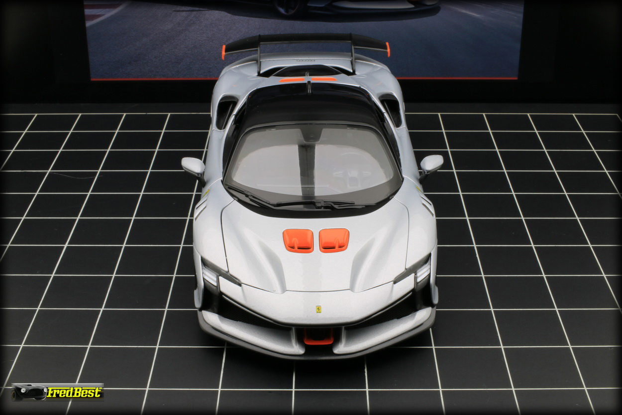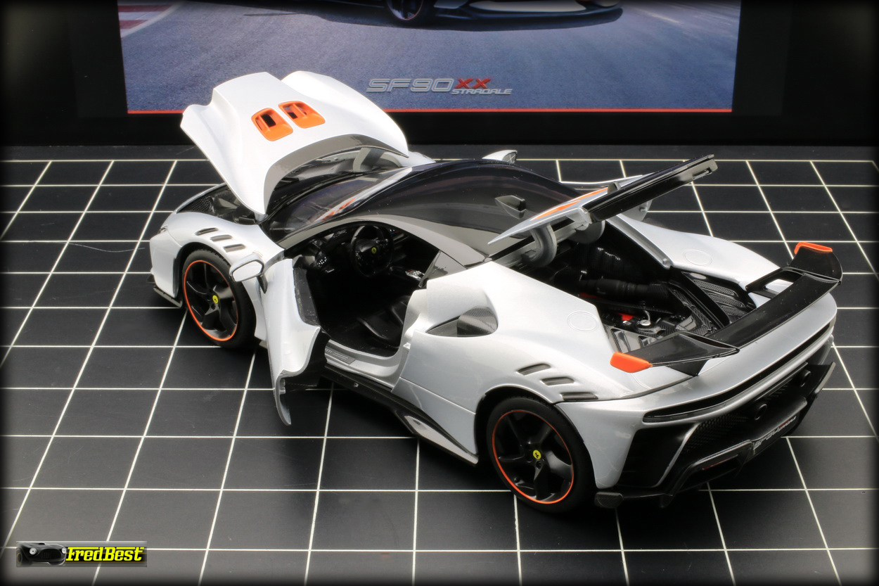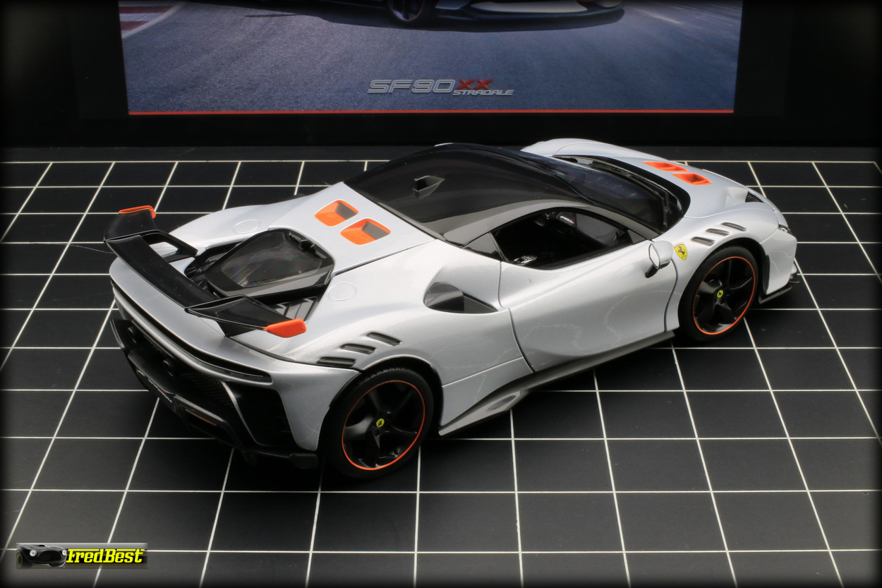 Disponible depuis fin janvier 2025, voici enfin la SF90 XX Stradale promise par Bburago depuis plus d'un an. En attendant les futures versions "Signature" la voici en finition "Race & Play".