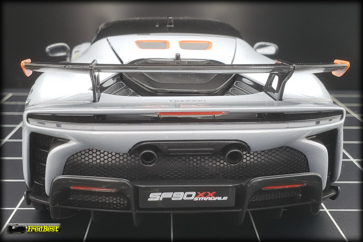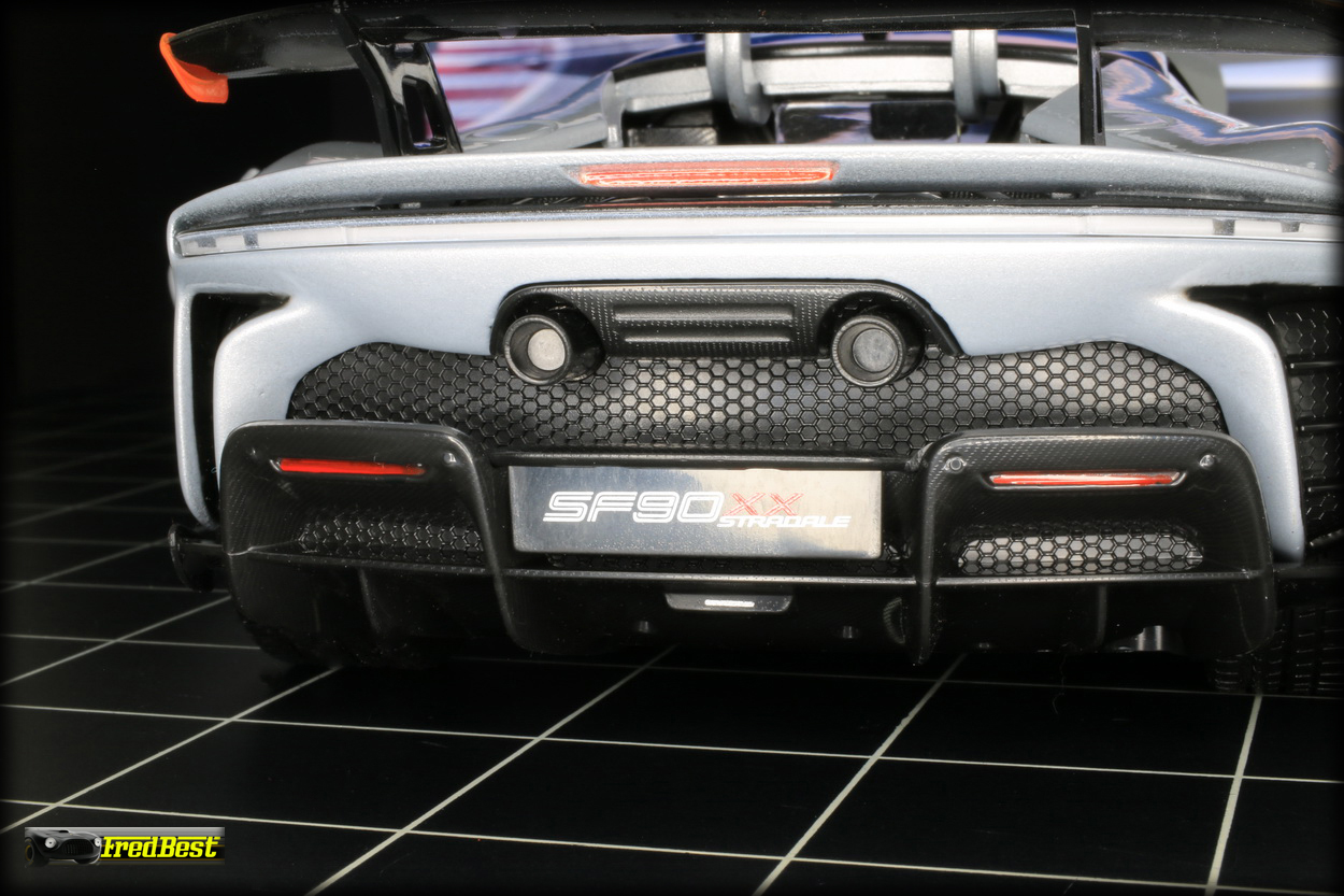 Bburago aurait pu s'appliquer un peu plus sur les échappements de cette SF90 XX Stradale qui manque de réalisme. Pour corriger cela, il suffit de les percer un peu plus profond à l'aide d'un forêt