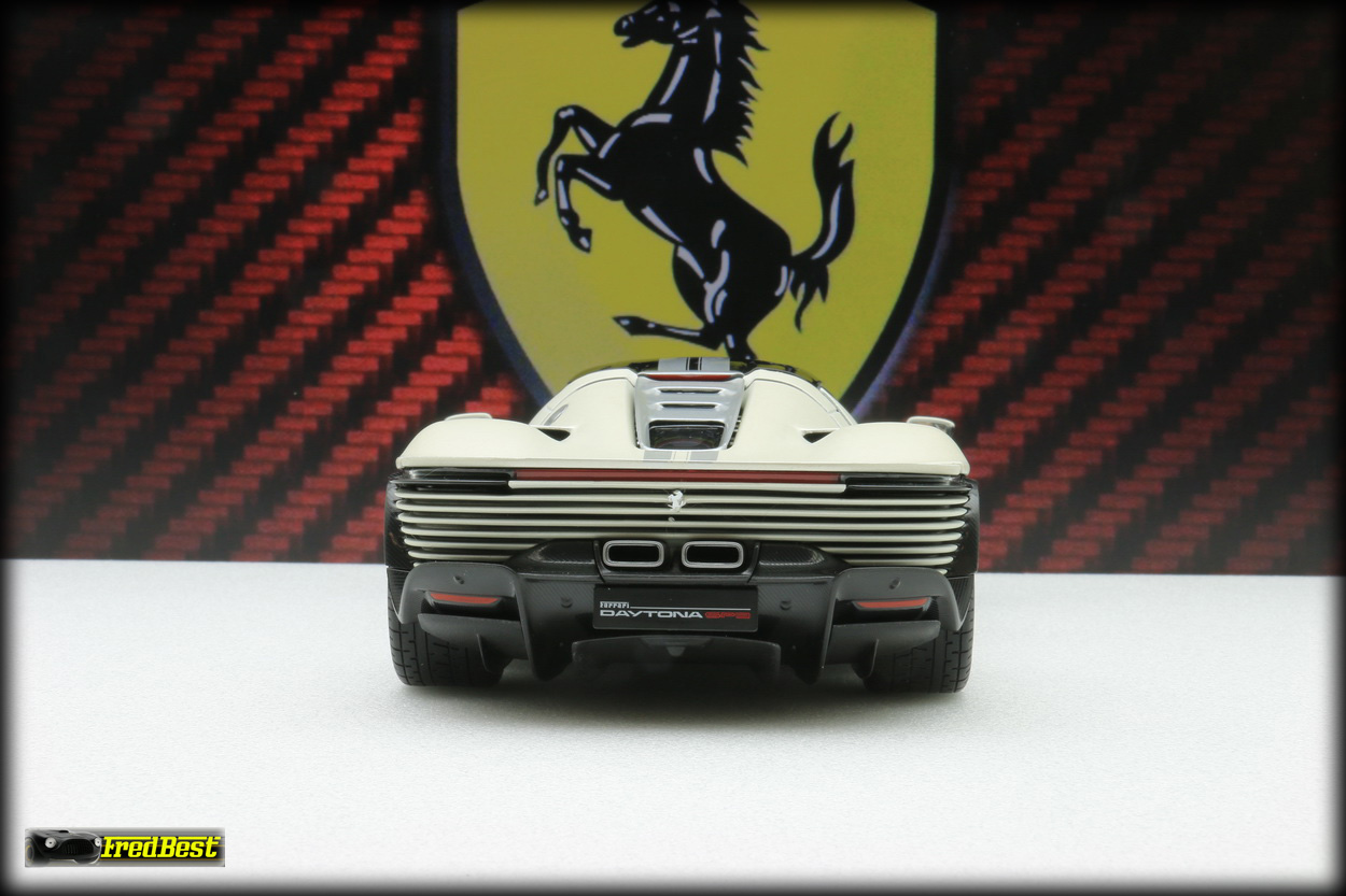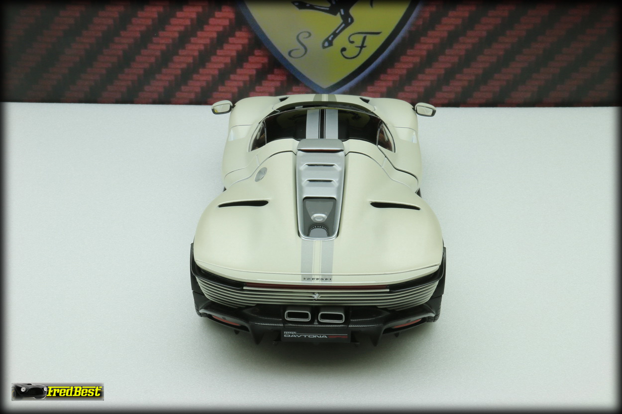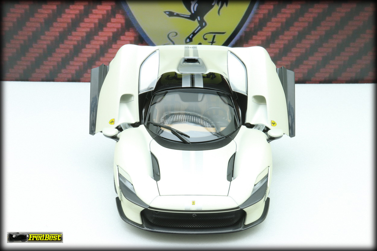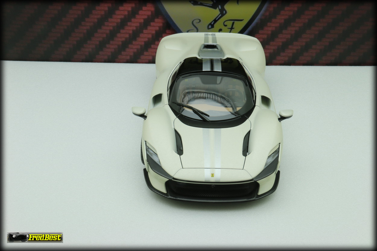 modèles, une Rosso Corsa 322 intérieur beige, une Rosso Magna intérieur bleu et celle qui vous est présentée ici, une blanche mat à bandes grises. Si elle n'est pas encore au niveau de la référence