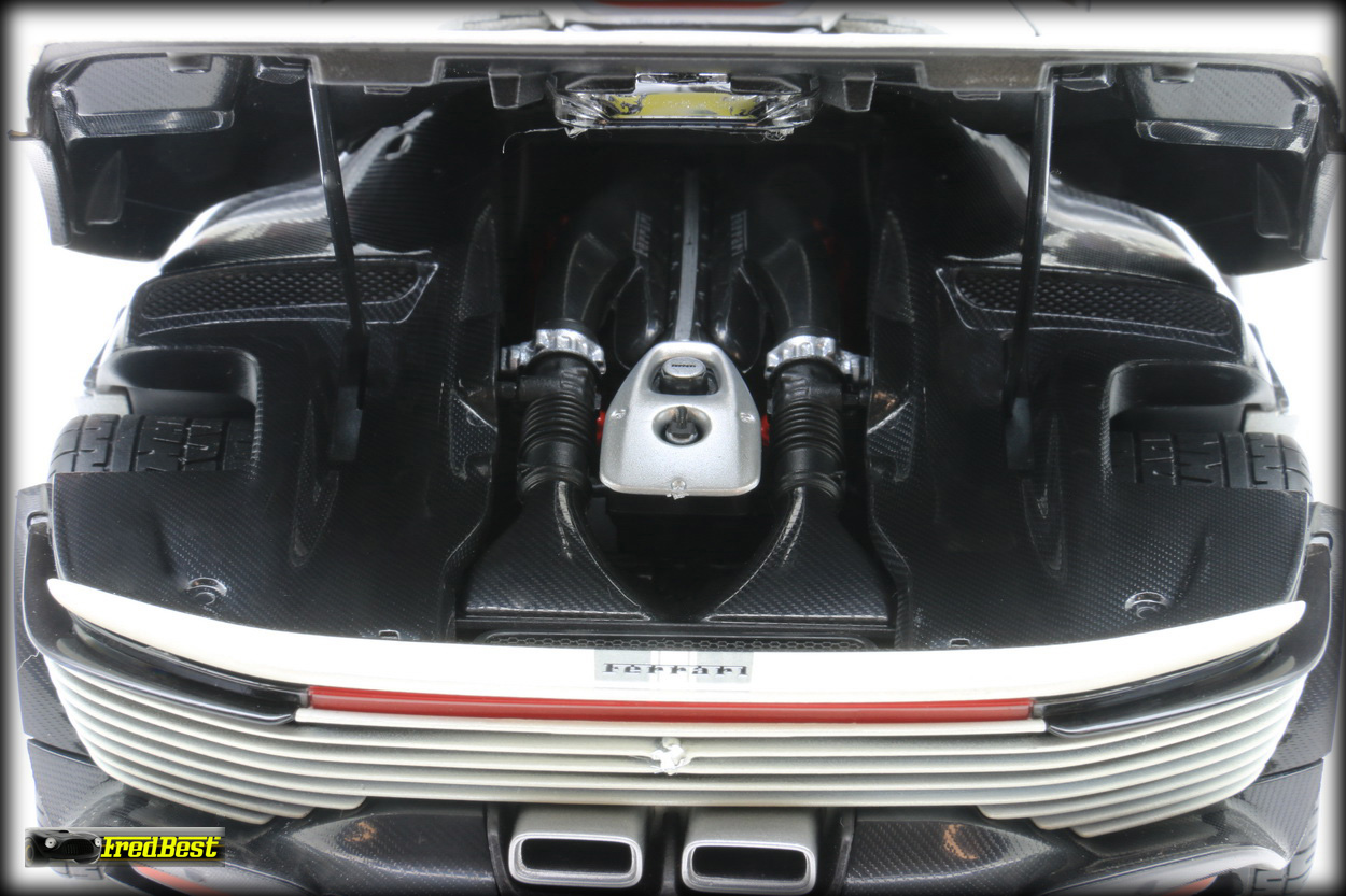 du segment qu'était la gamme Elite de chez Hotwheels, elle s'en approche de plus en plus. On pourra noter la présence de petits verrins pour soutenir le capot arrière, et les caches de ses phares avant