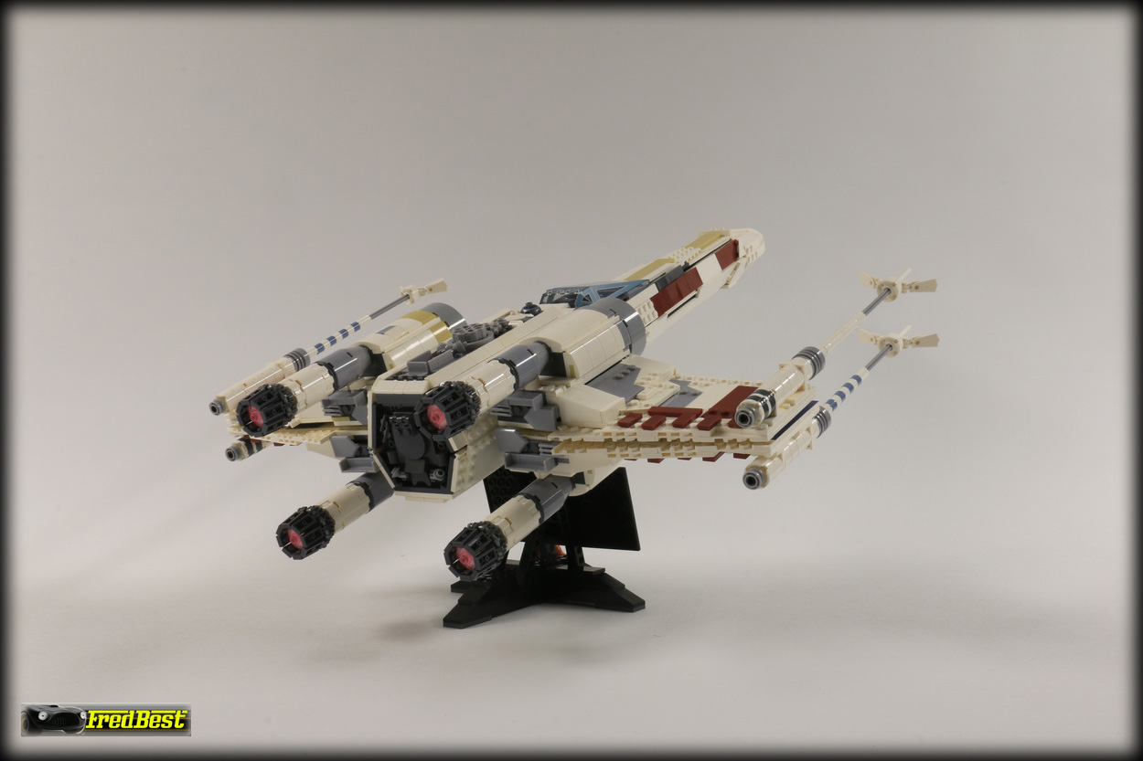 Disponible en mai 2023 sous la référence 75355 et au prix de 239,99 euros, voici la troisième réédition du X-Wing de Lego, après les références 7191 datant de 2000 et 10240 de 2013.