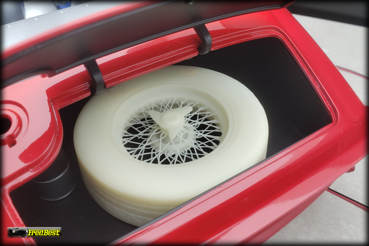 Modification du différenciel de pont arrière: passage en noir des centres comme sur la voiture 1/1 et ajout de douze boulons sur le pourtour extérieur, dégoté sur le net et imprimés en 3D résine.