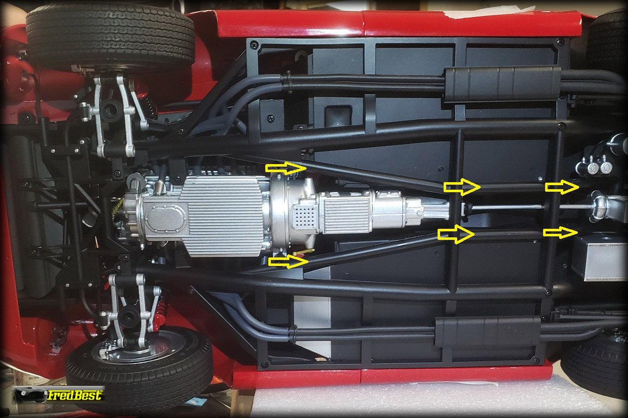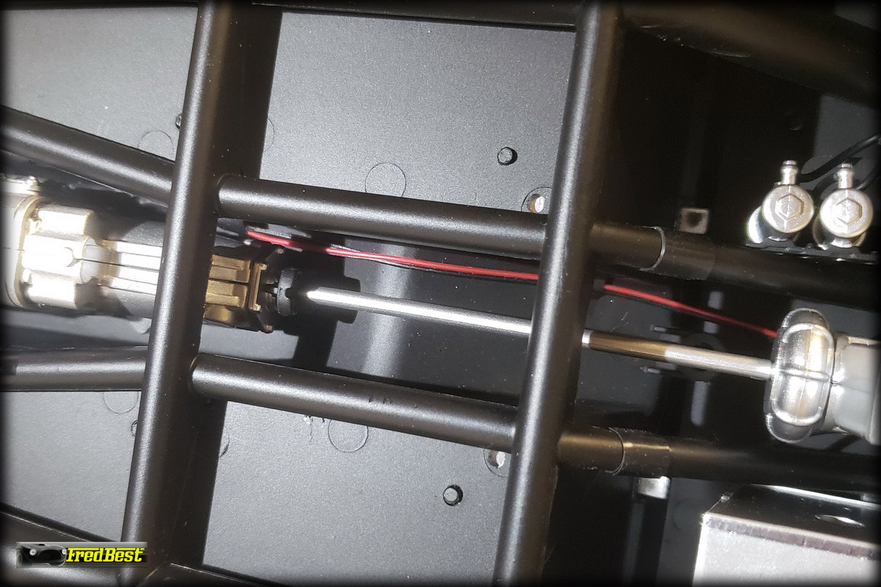 Les traverses creuses du châssis ont été bien pratiques pour cacher les câbles qui vont vers l'arrière. Le montage se termine avec l'assemblage final de la partie avant au reste du châssis. Une opération