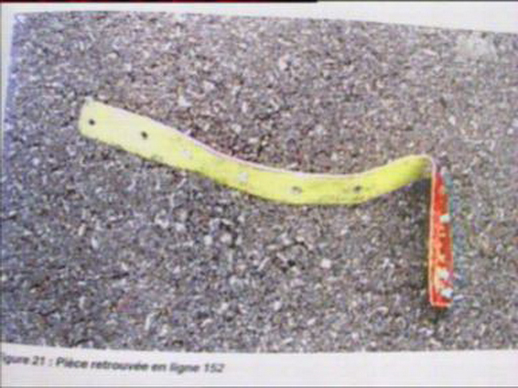 Passage à grande vitesse d'un pneumatique sur une pièce perdue par un avion qui avait décollé cinq minutes plus tôt et destruction de ce
