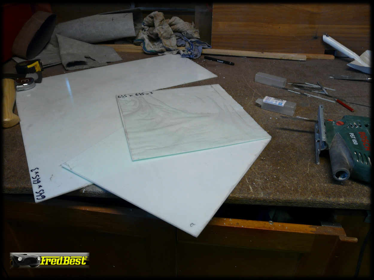 Et on continue ... Découpage des panneaux latéraux en PVC blanc et assemblage.