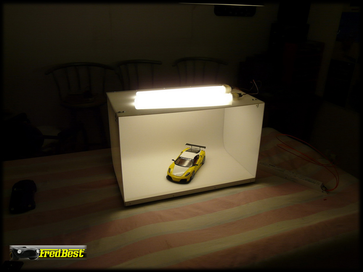 petits objets, ici, des voitures 1/18. Pour compliquer l'équation, en intérieur, la lumière artificielle de nos foyers rend souvent les