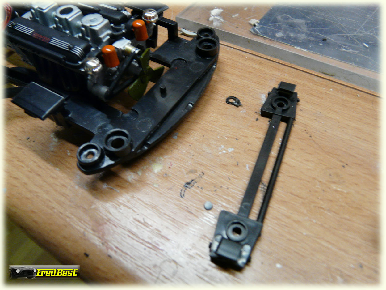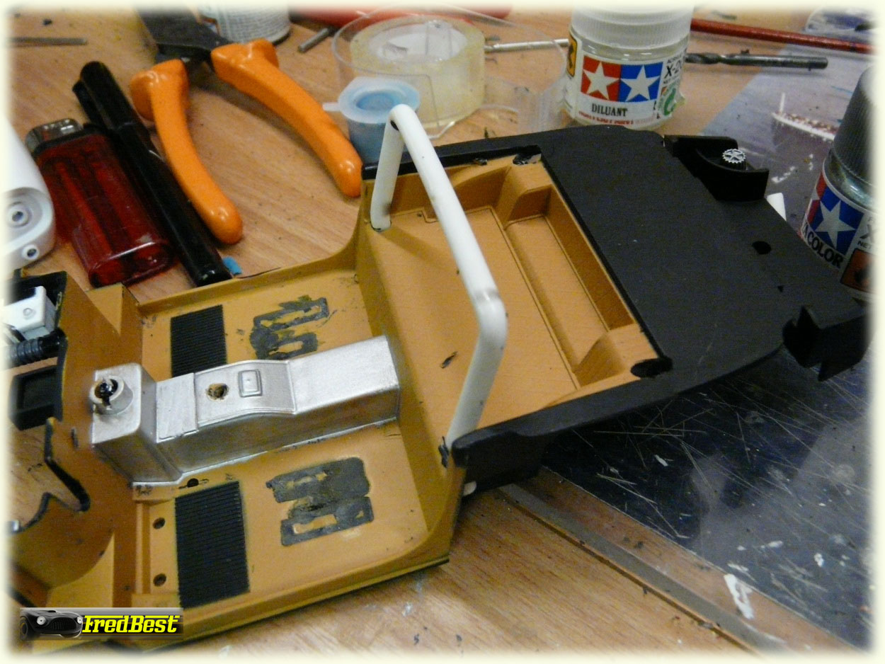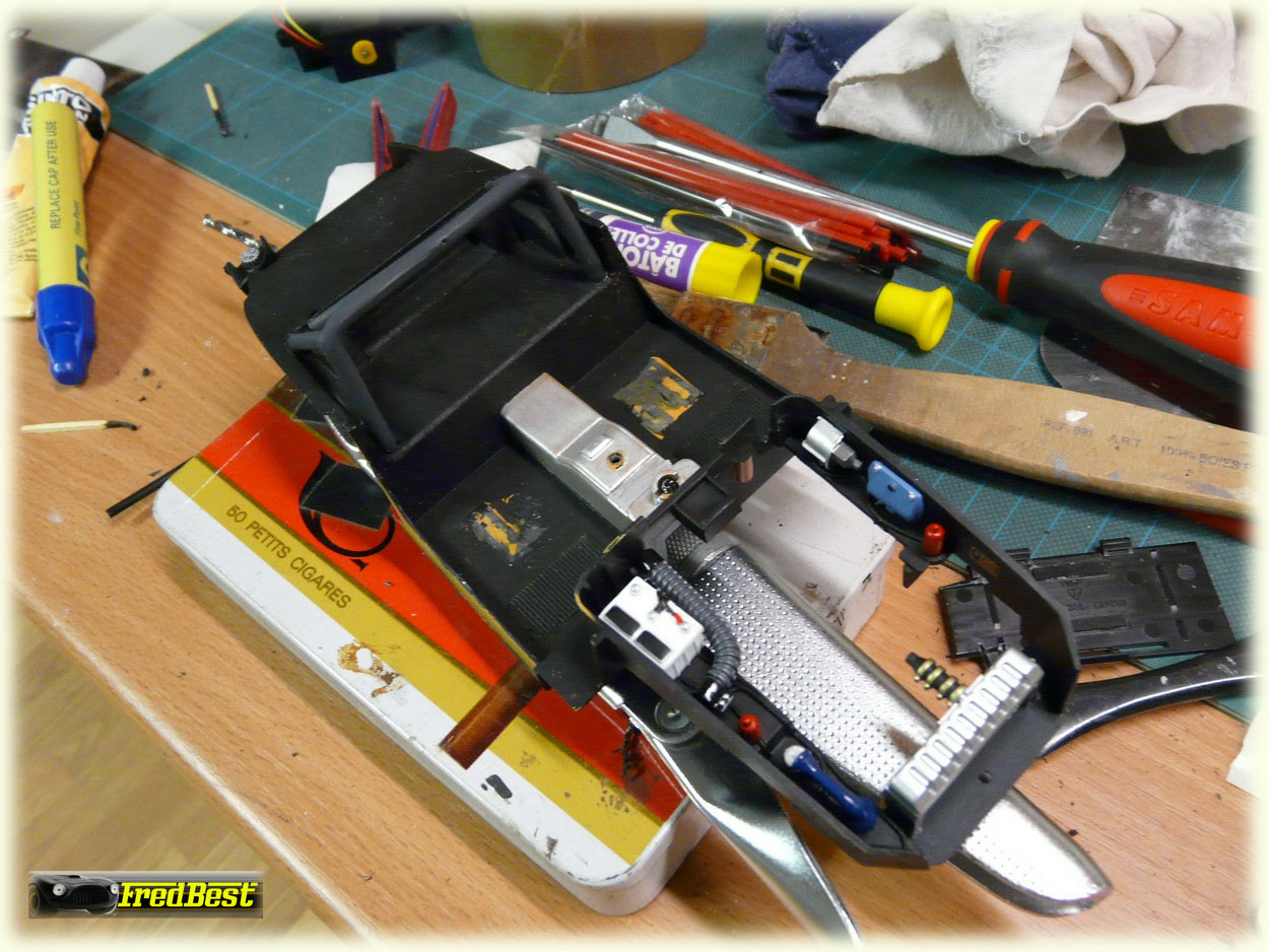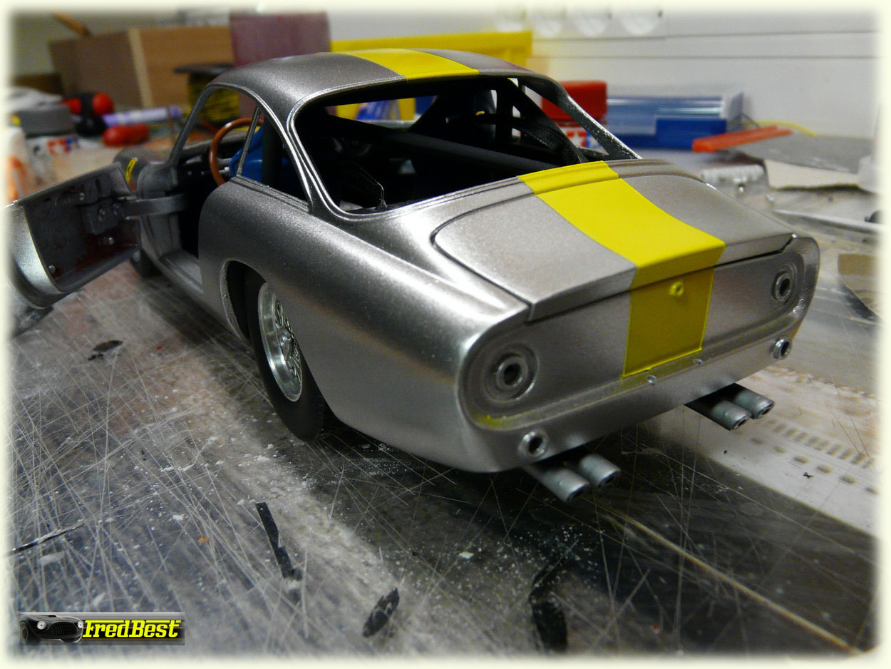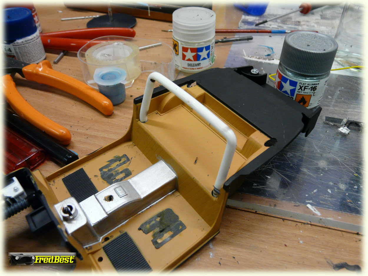 Suppression des pare-chocs avant et masticage de leurs anciens emplacements.