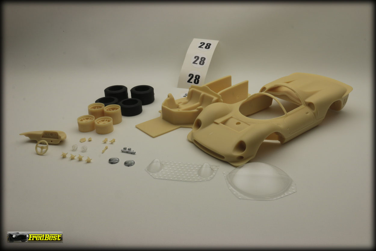 Kit résine complet MT Models acheté sur internet, de bonne qualité et finement reproduit. Il s'agit de la 330 P2 châssis 0386 de David Piper.
