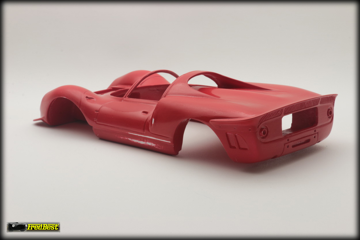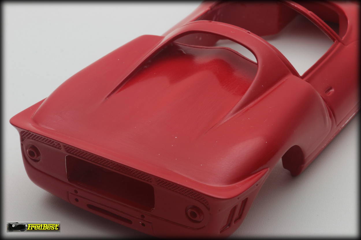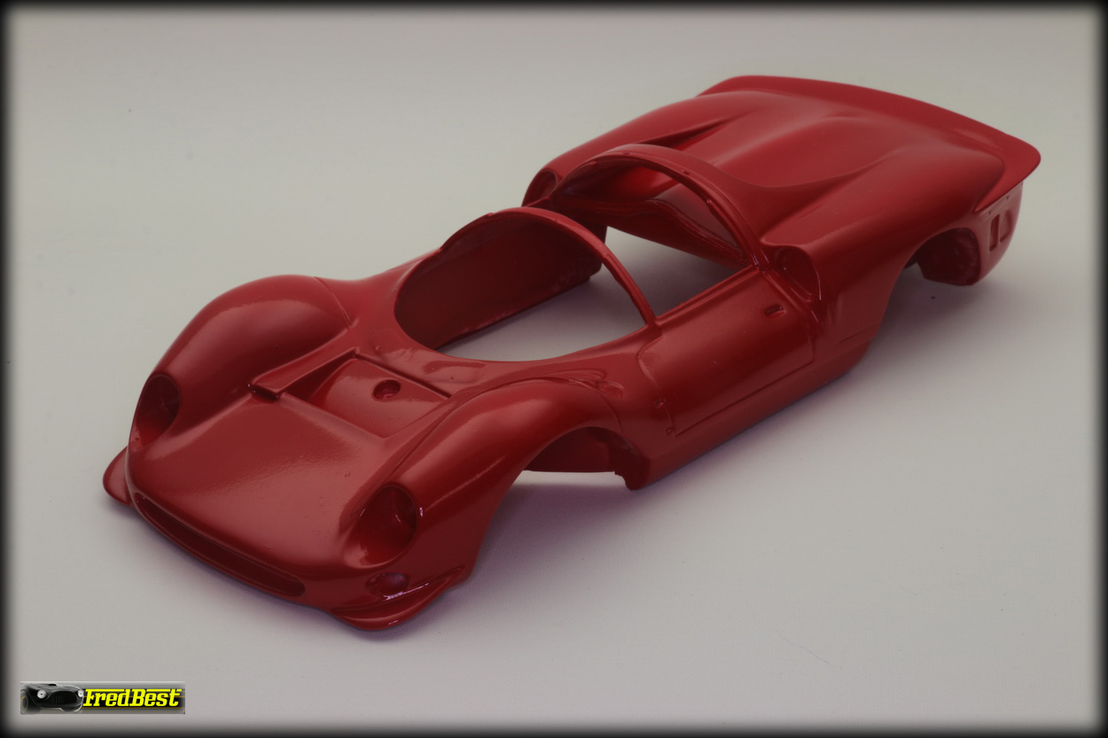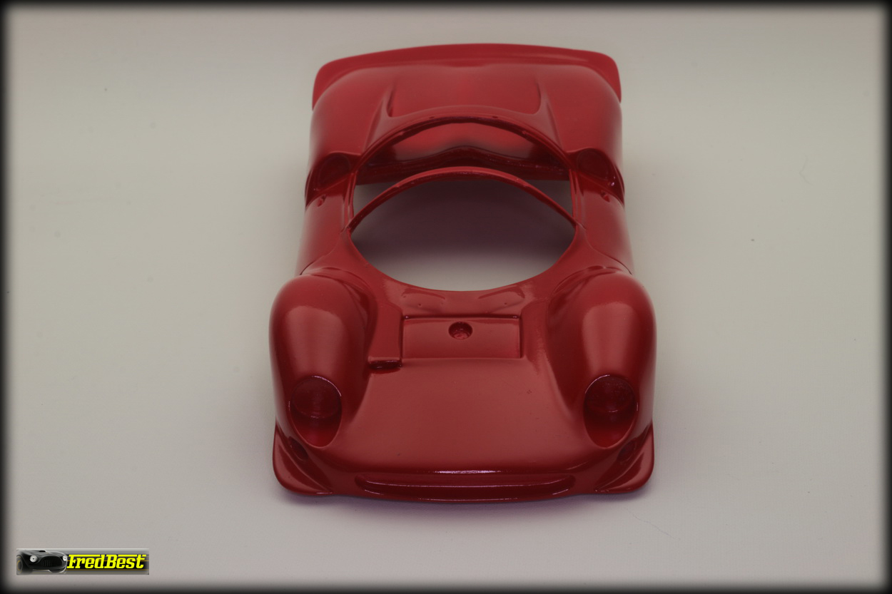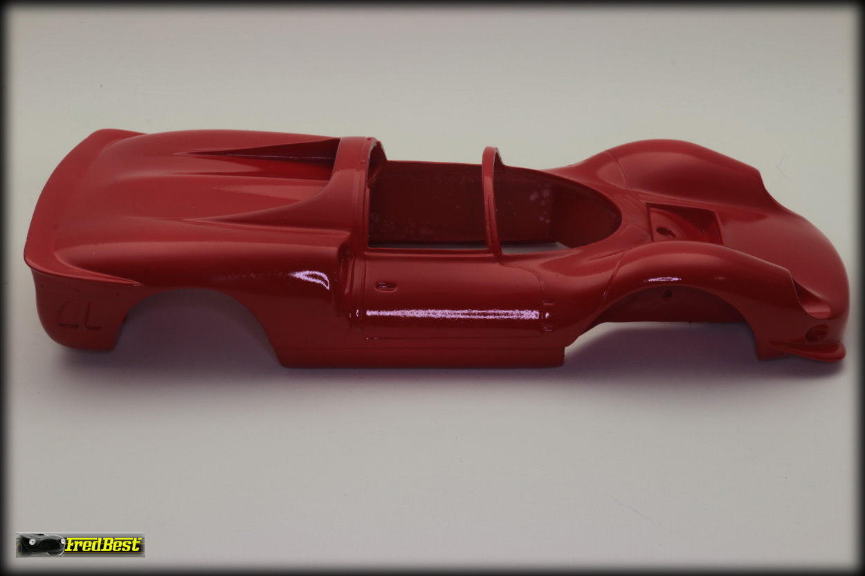 Mise en peinture après un bon dégraissage de la carrosserie. Petit ponçage à l'eau pour gommer les derniers défauts et deuxième couche de rouge.