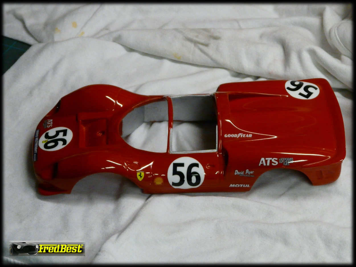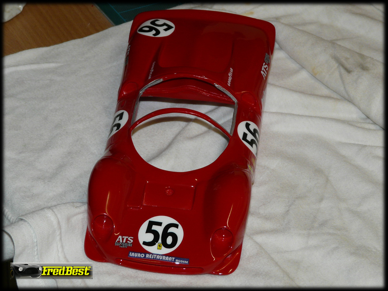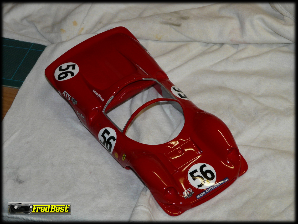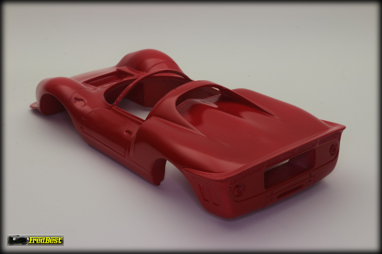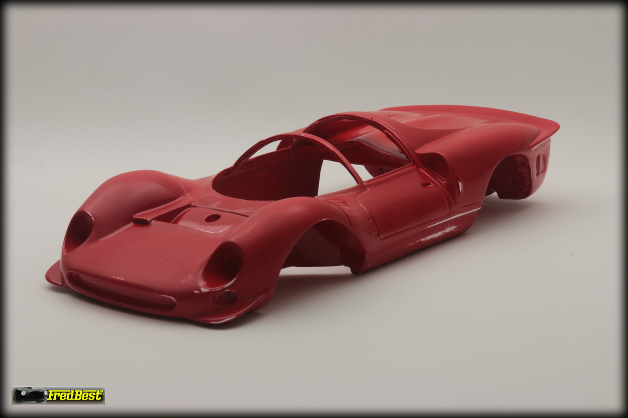 Mise en peinture après un bon dégraissage de la carrosserie. Petit ponçage à l'eau pour gommer les derniers défauts et deuxième couche de rouge.