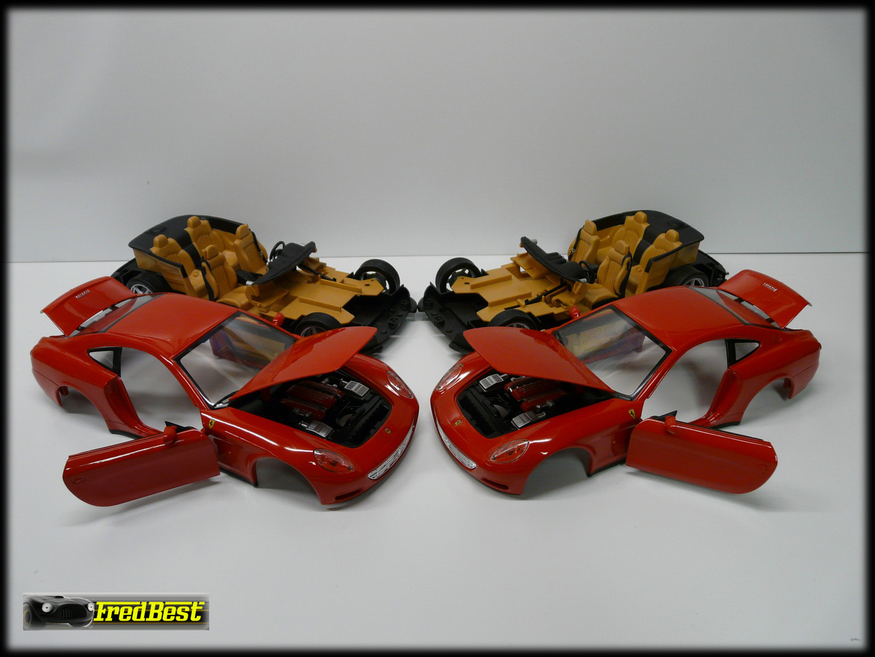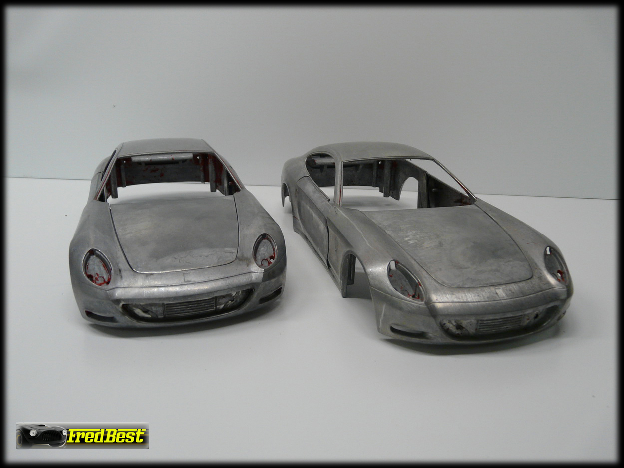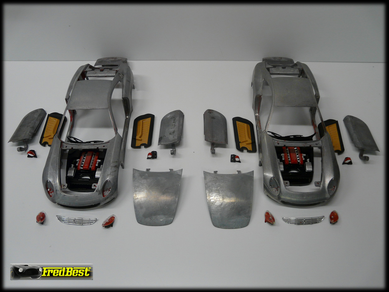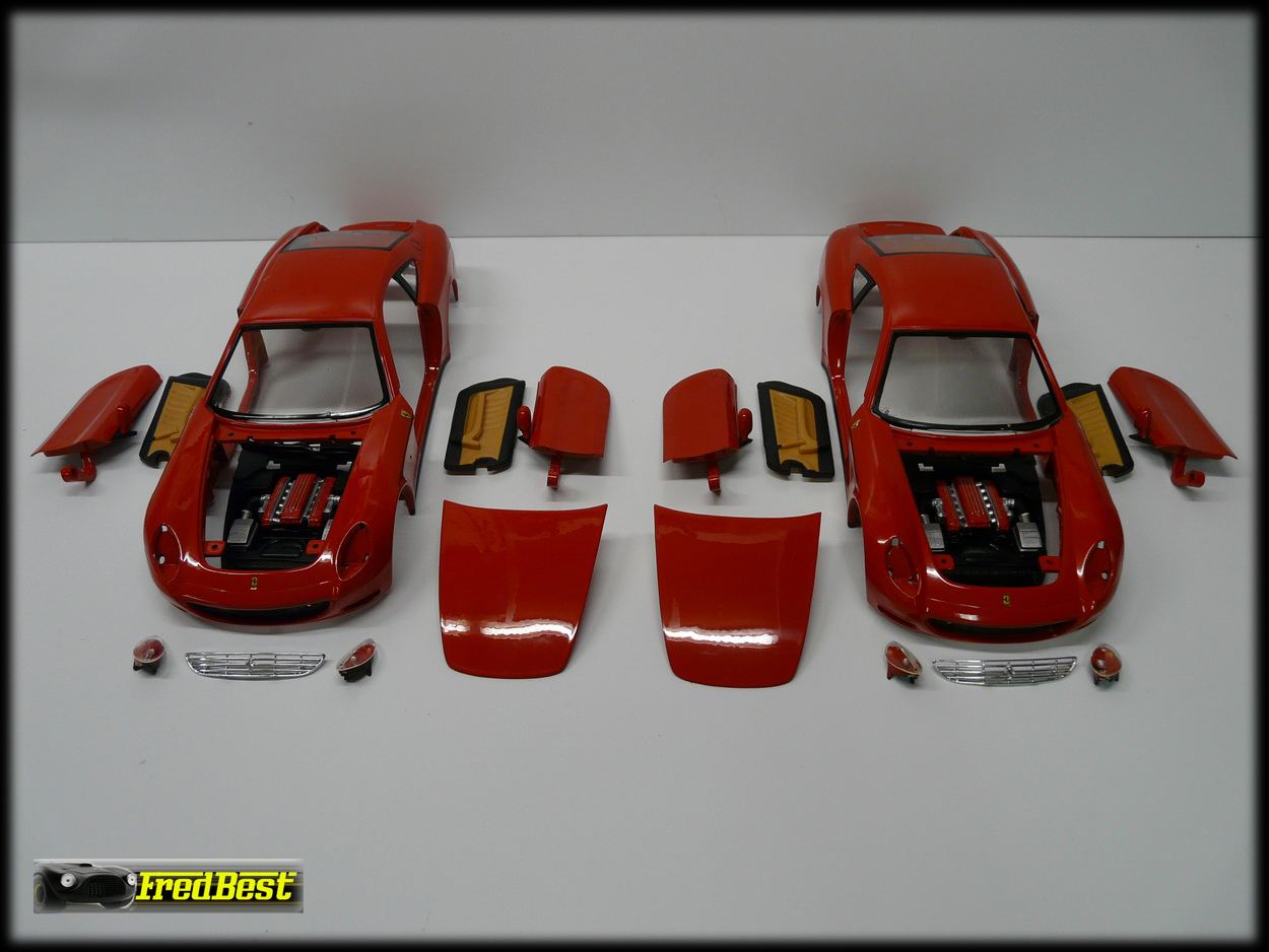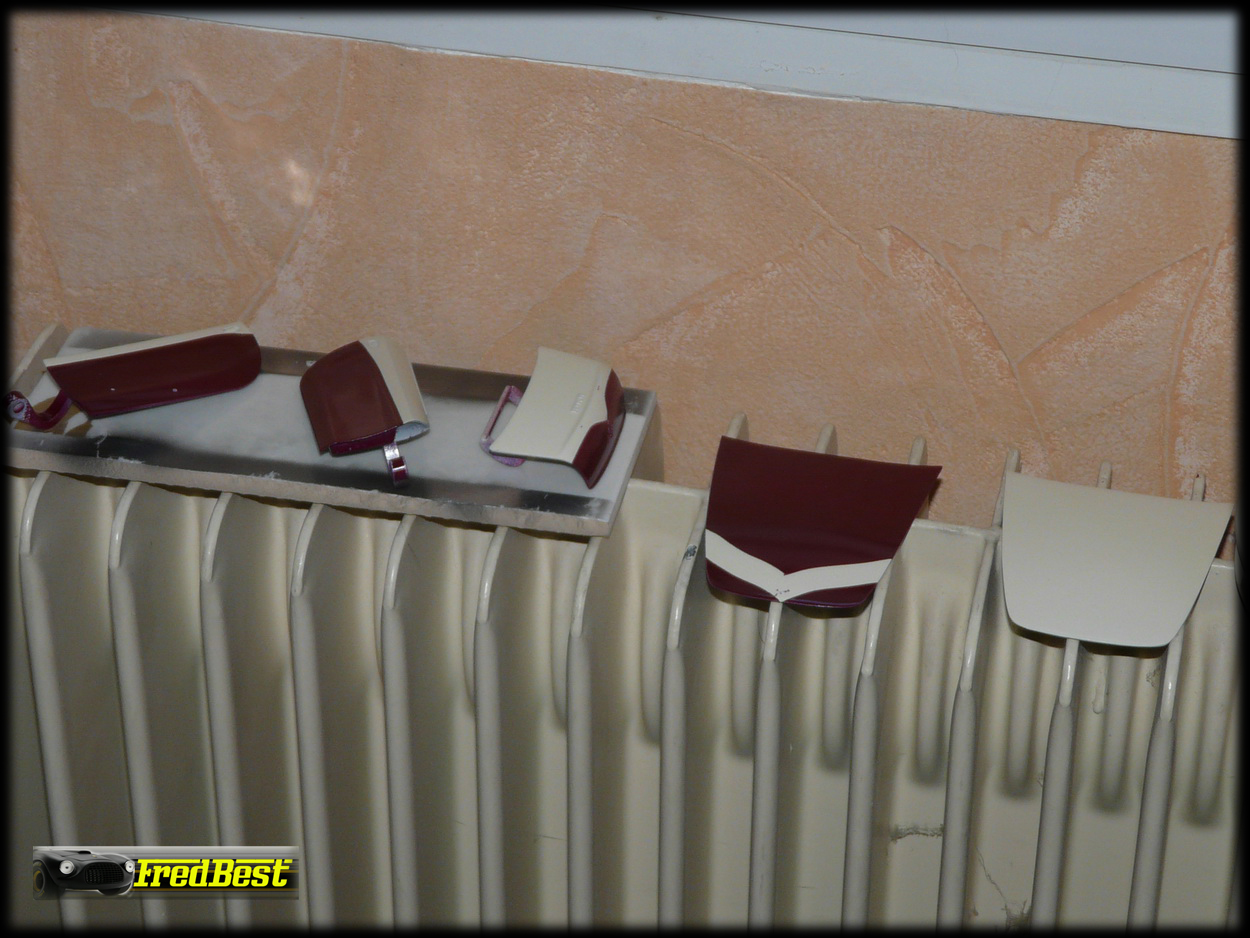 Mise en peinture des deux carrosseries. J'ai rencontré beaucoup de difficultés à peindre les décorations de ces modèles tellement les