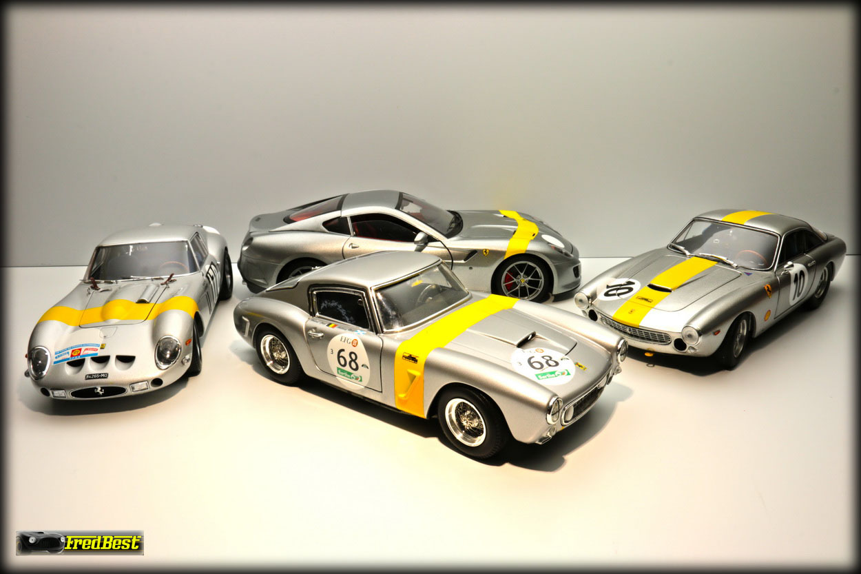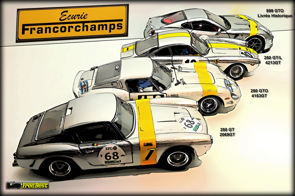 Voici un petit shooting de quelques voitures ayant couru sous la banière "Francorchamps", une 250 GT Berlinetta, une 250 GTO