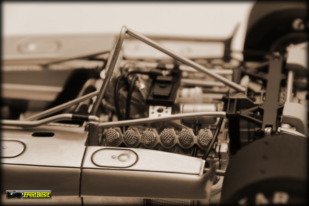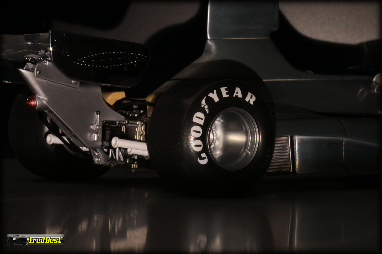 mécaniques. Pour contourner le manque de poids sur l’essieu arrière, un gigantesque aileron surplombe les roues, leur accordant une