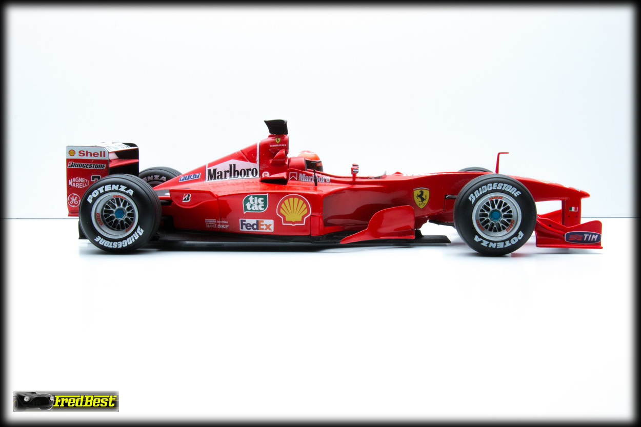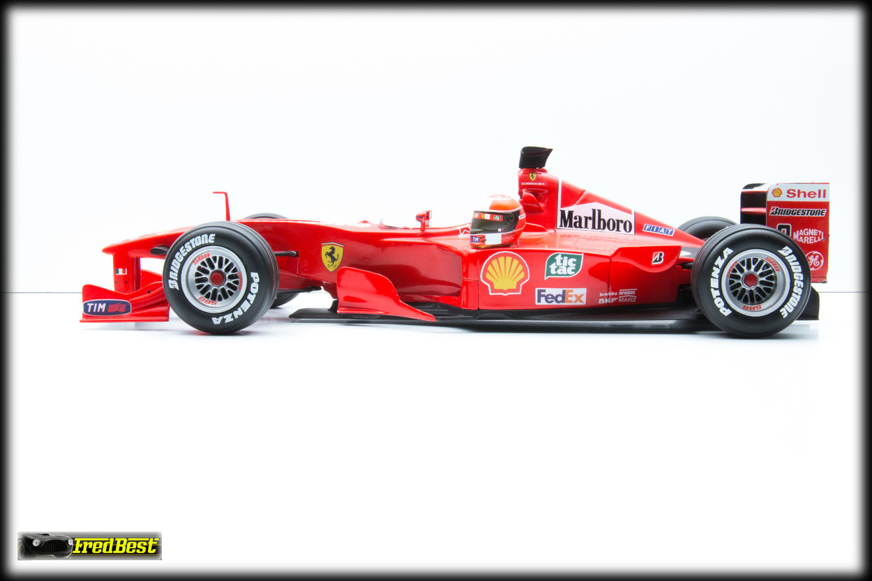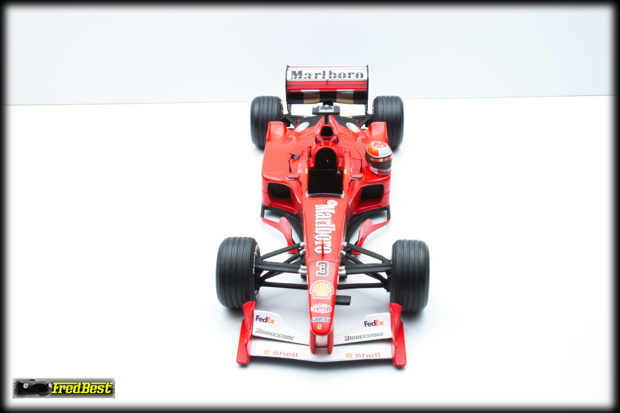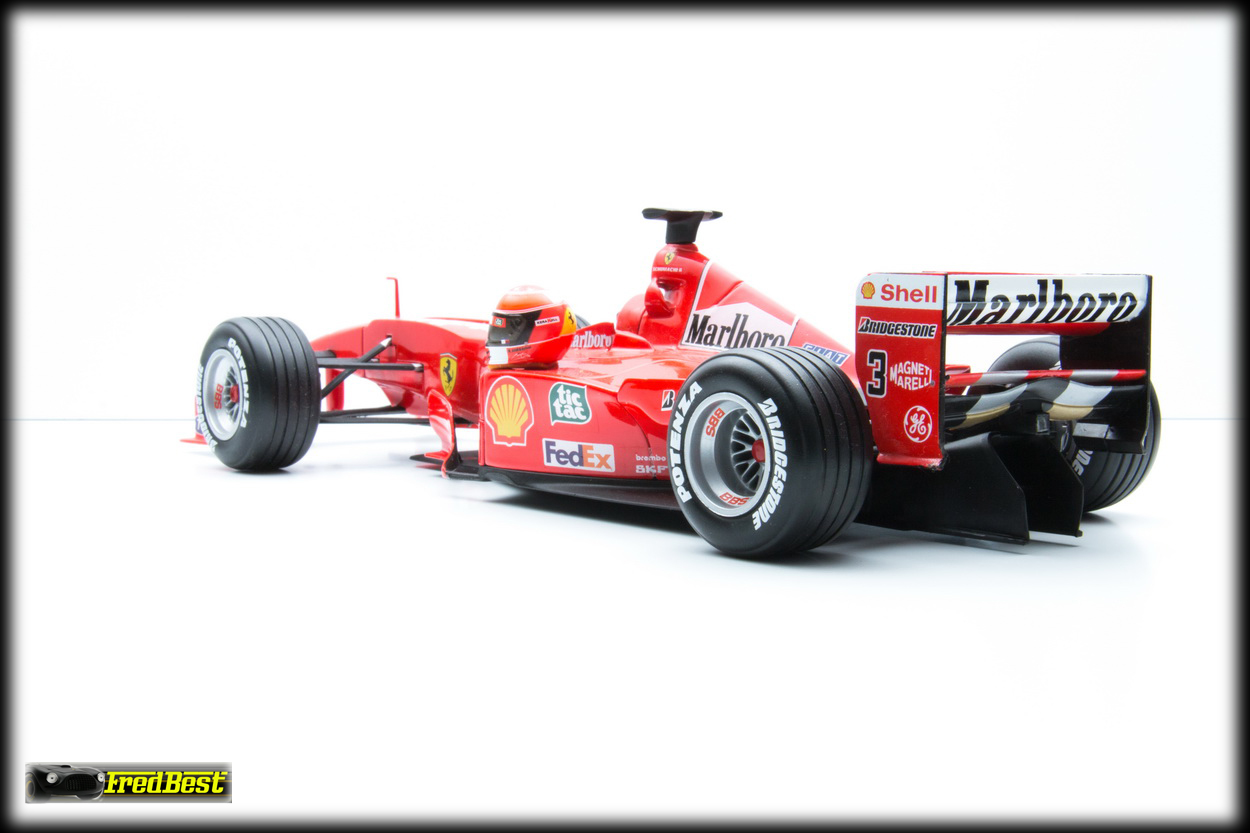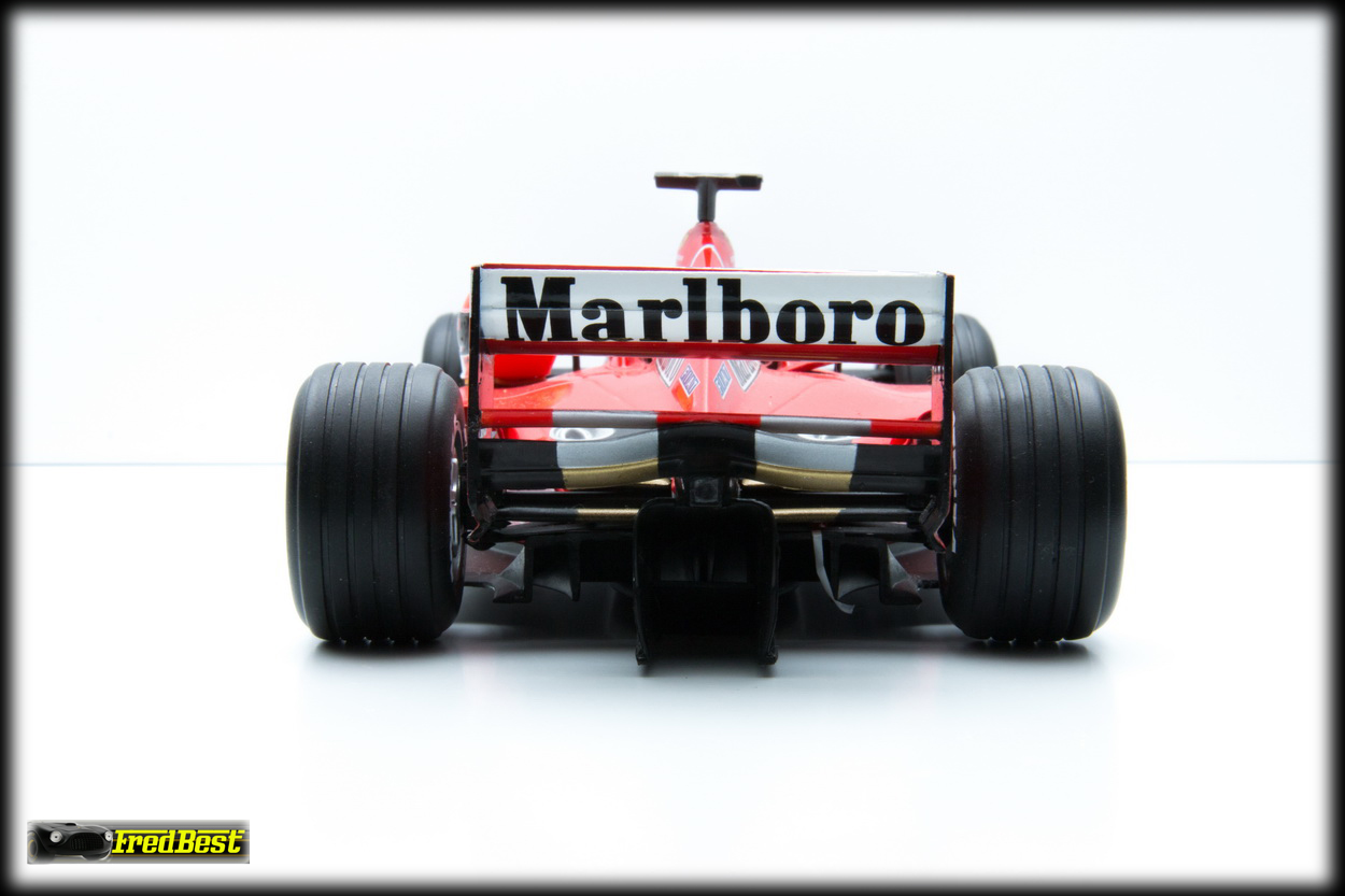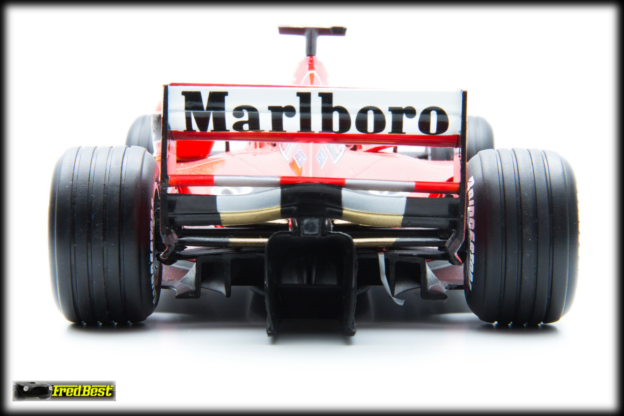 Reproduite par Hotweels, référence 26737, Michael Schumacher. Pilote retiré, casque scotché, ajout de décalcomanies Marlboro.
