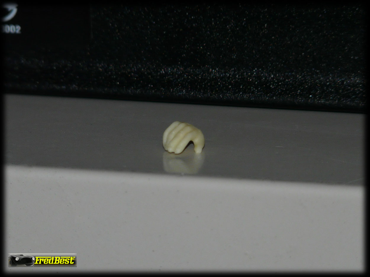 Petite modif a effectuer au préalable: une deuxième main est fournie pour pouvoir supprimer le surplus de matière disgracieux derrière celle