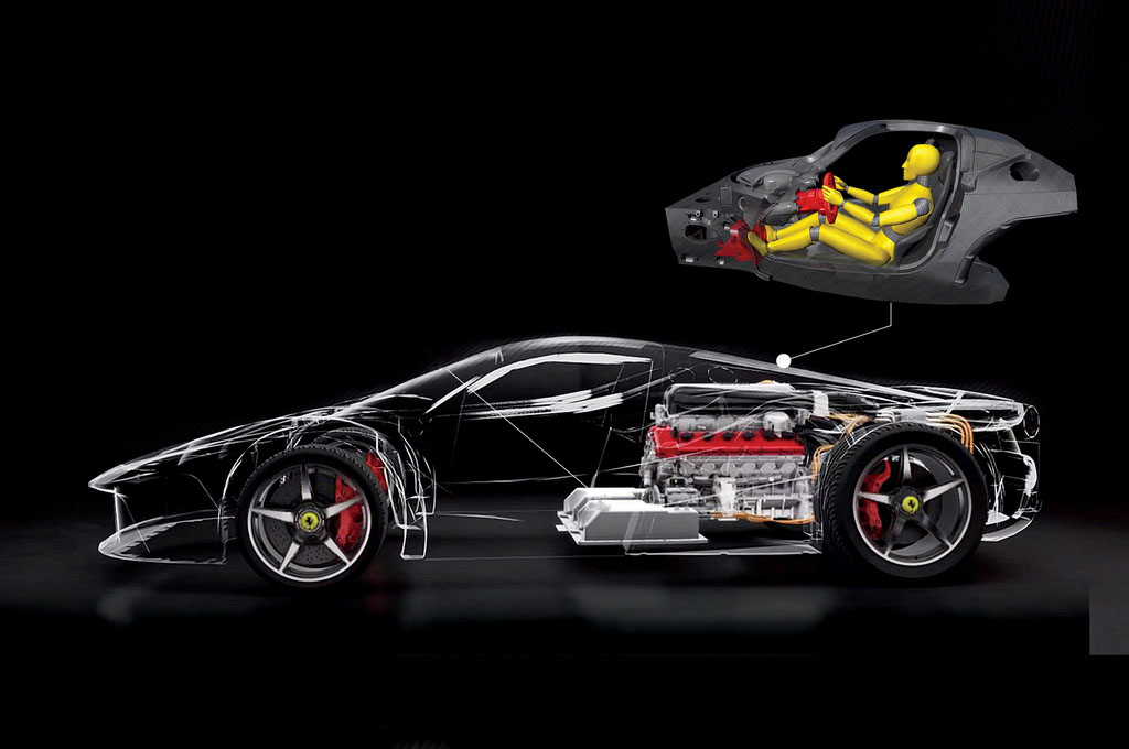 durcis en autoclave. Pour le rigidifier au maximum, environ 25% de plus qu'une Enzo, les ingénieurs Ferrari y ont intégré plusieurs