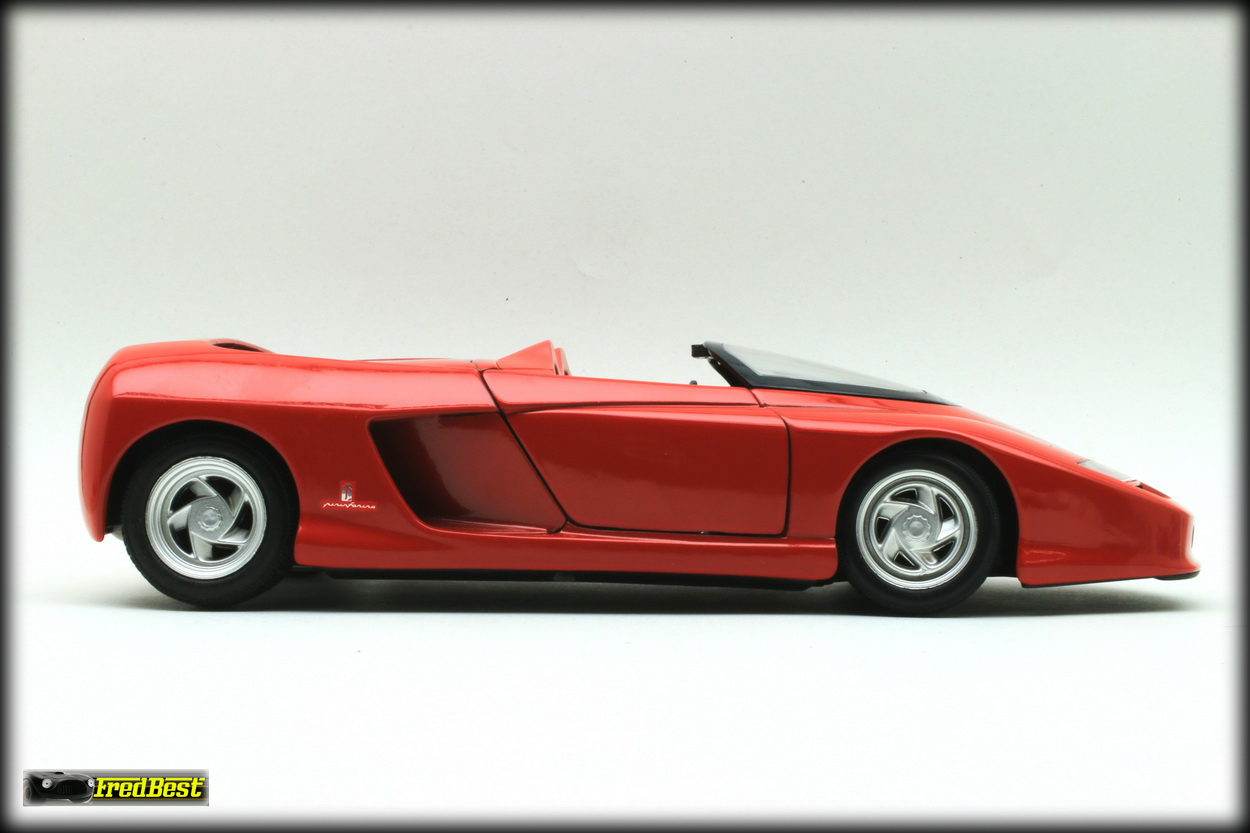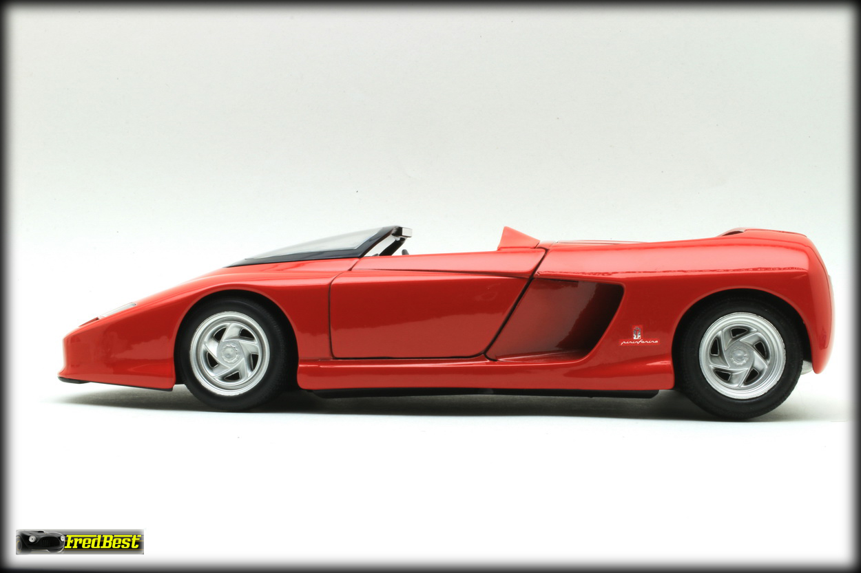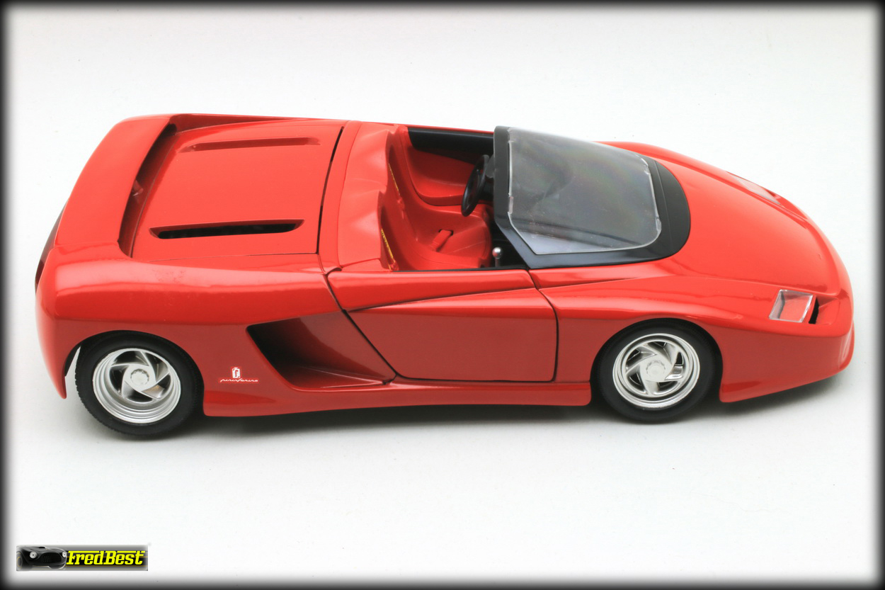 Pininfarina développent une carrosserie style « barquette » en fibre de carbone, sans toit ni fenêtres latérales tandis que le tableau de bord, les panneaux de porte et les sièges sont de simples coquilles