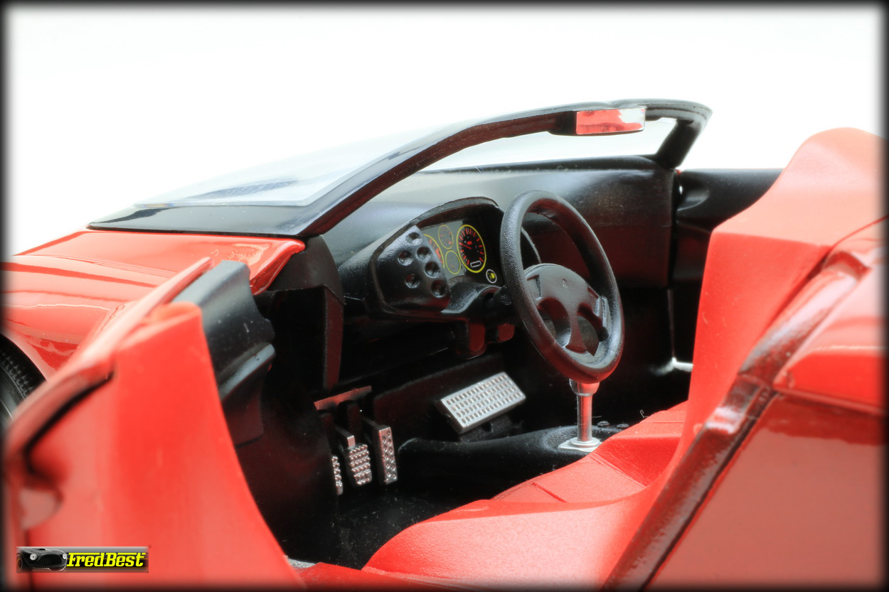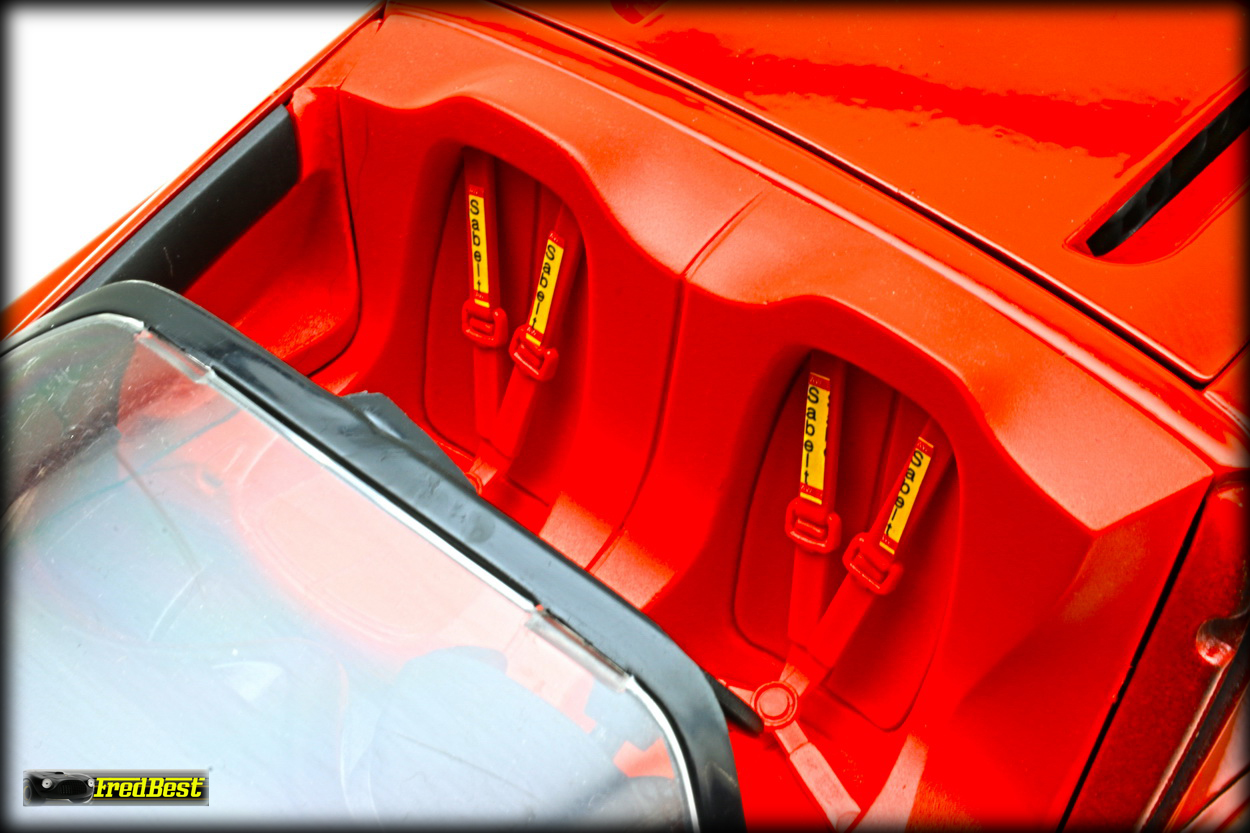 recouvertes de cuir. Elle est environ 13cm plus large, 15 cm plus courte, et 8cm plus basse que la Testarossa, lui donnant un aspect vraiment compact pour une super-car.