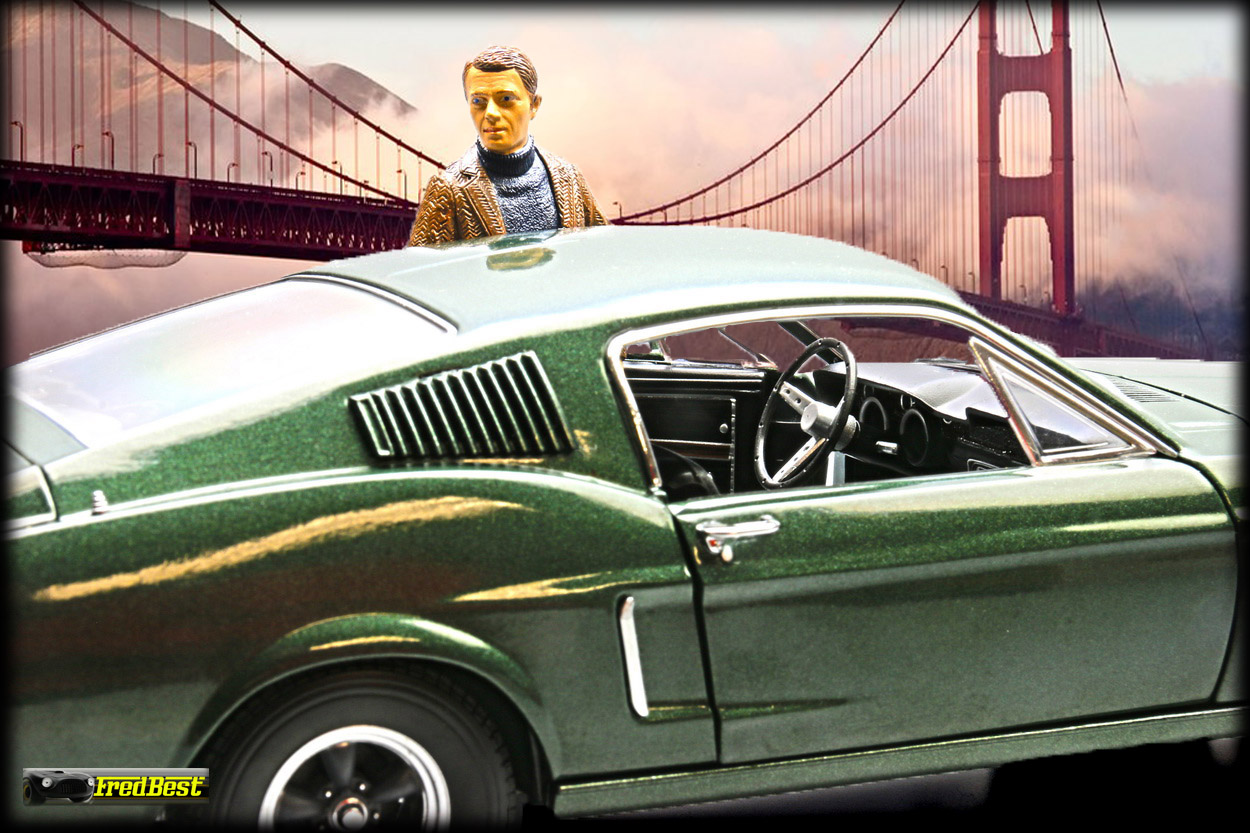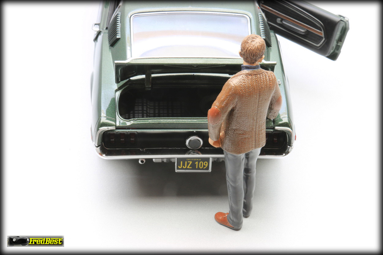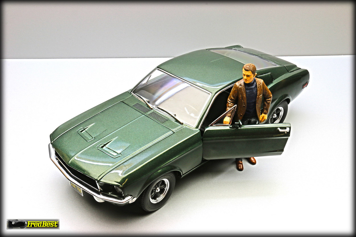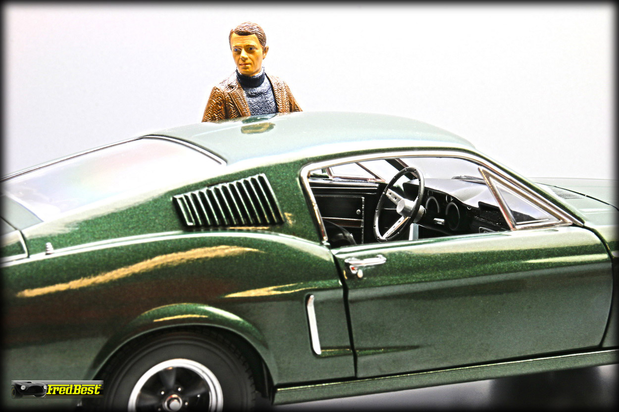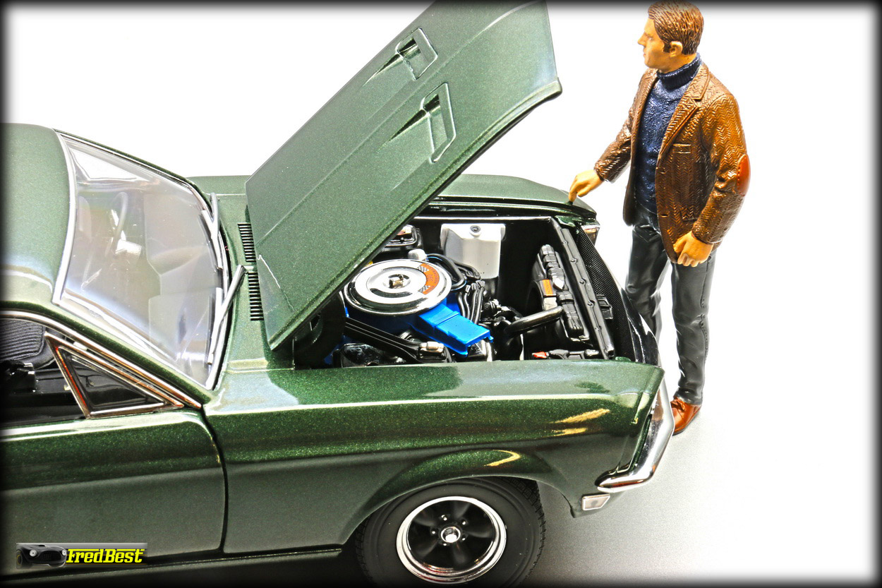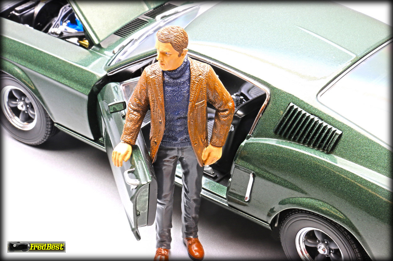 figurine de Steve McQueen sous les traits de Franck Bullitt, cette Mustang est toute ouvrante, le moteur étant correctement détaillé.
