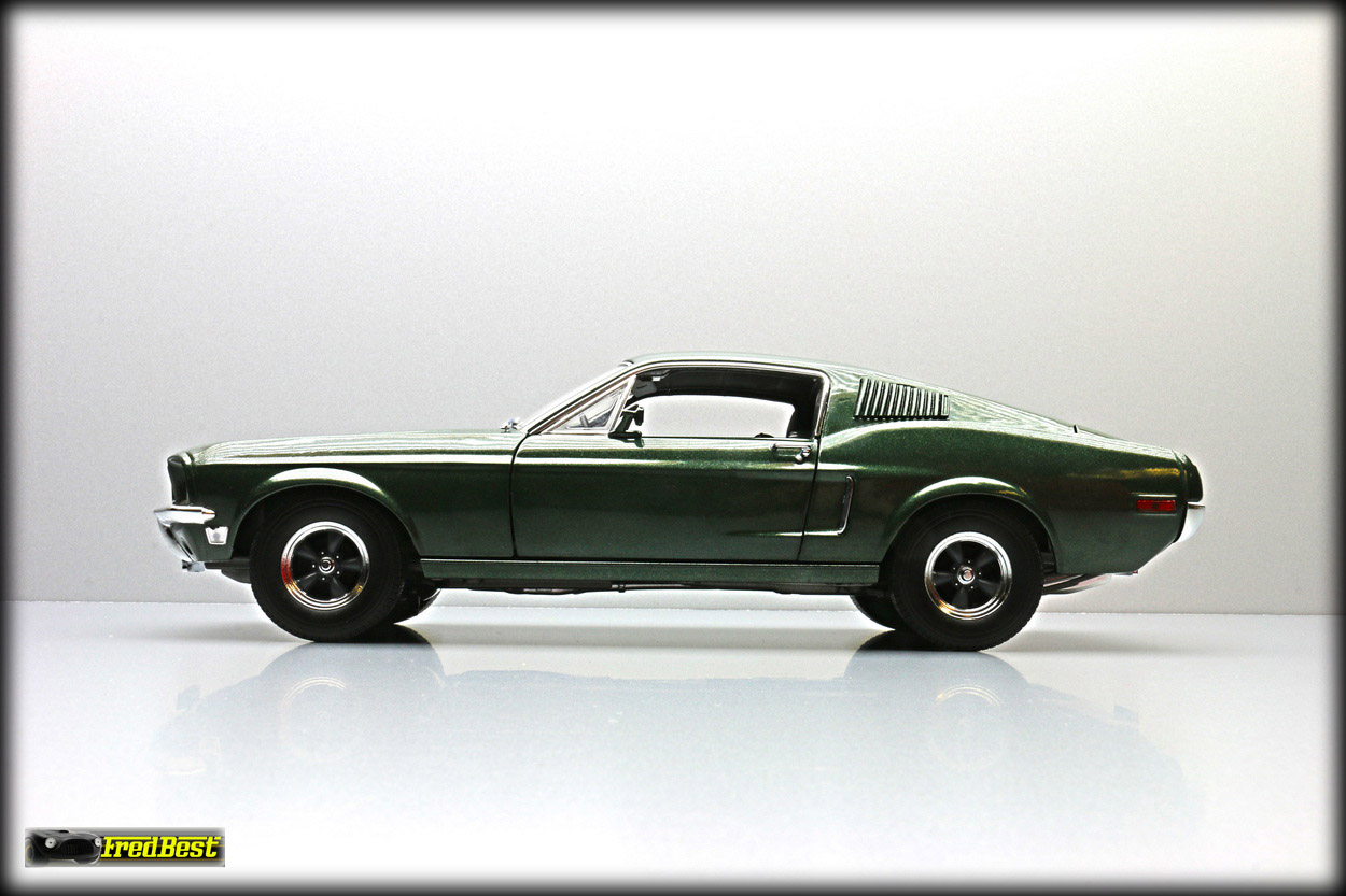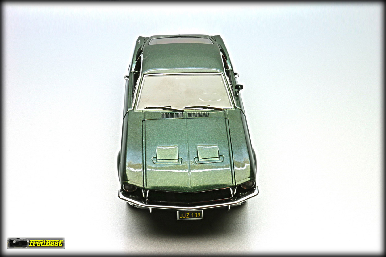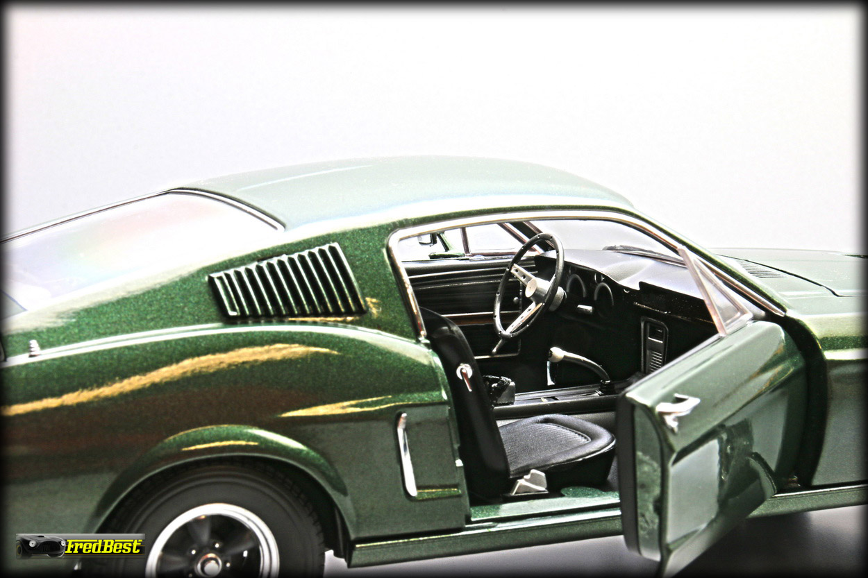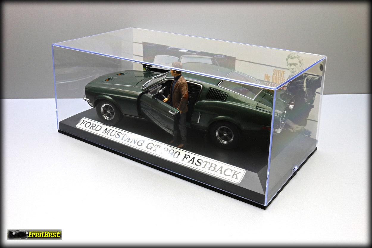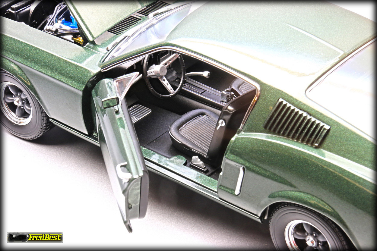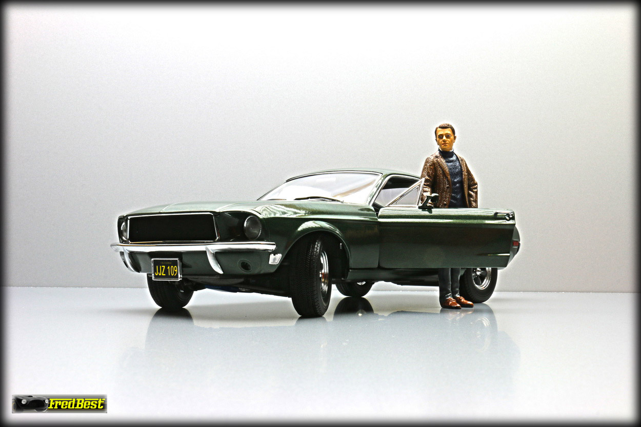 figurine de Steve McQueen sous les traits de Franck Bullitt, cette Mustang est toute ouvrante, le moteur étant correctement détaillé.