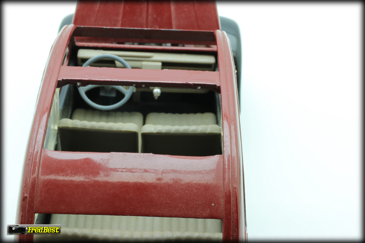 le pare-brise. La carrosserie présente aussi de multiple éclat et sur le coté droit il manque les autocolants "Charlestone". Mais chaque problème en son temps, attaquons d'abord le