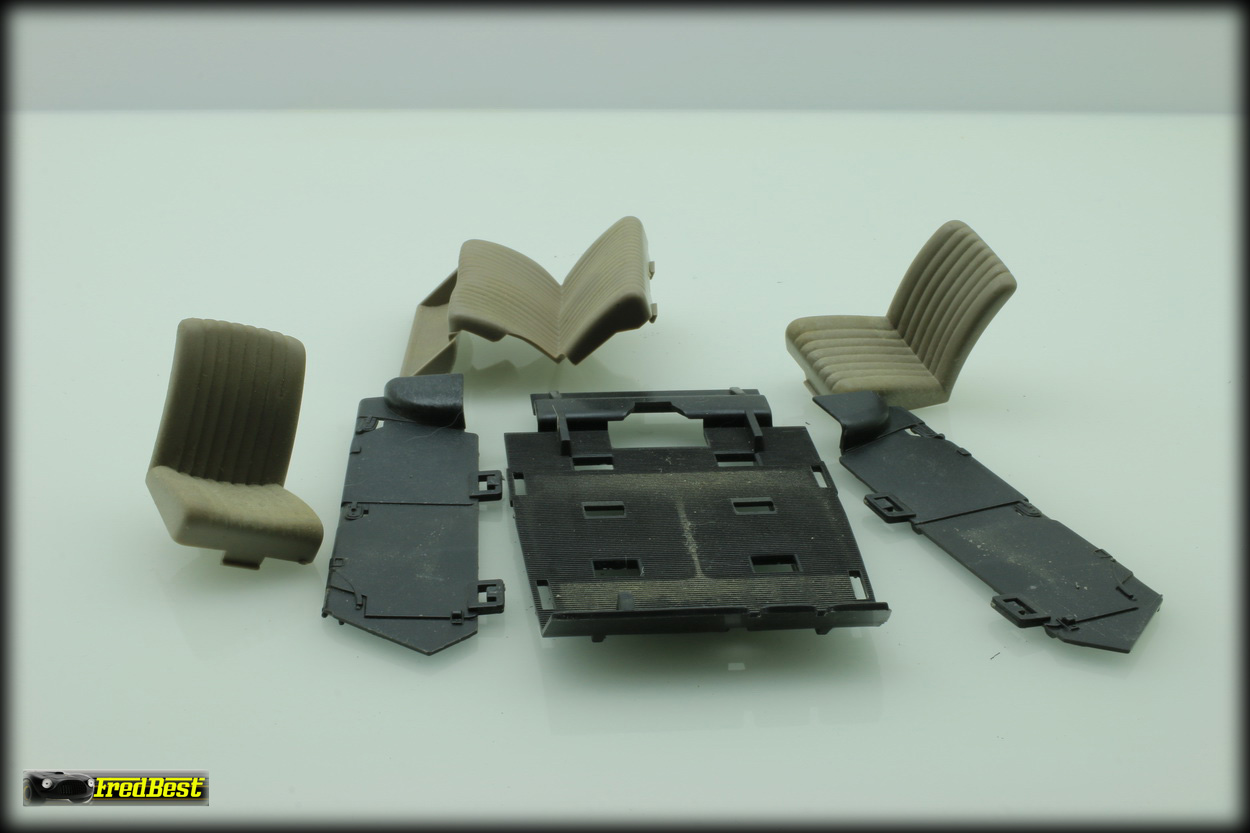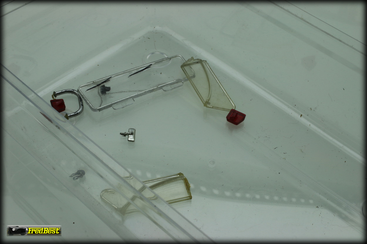 Comme vous pouvez le voir, il y a un peu de boulot. Il manque certaine pièces comme les phares et clignotants avant et d'autres sont cassés comme les barres de pare-chocs ou