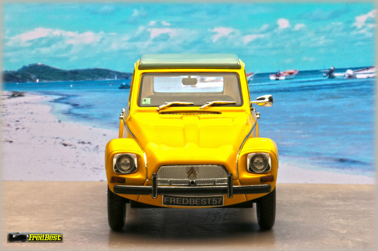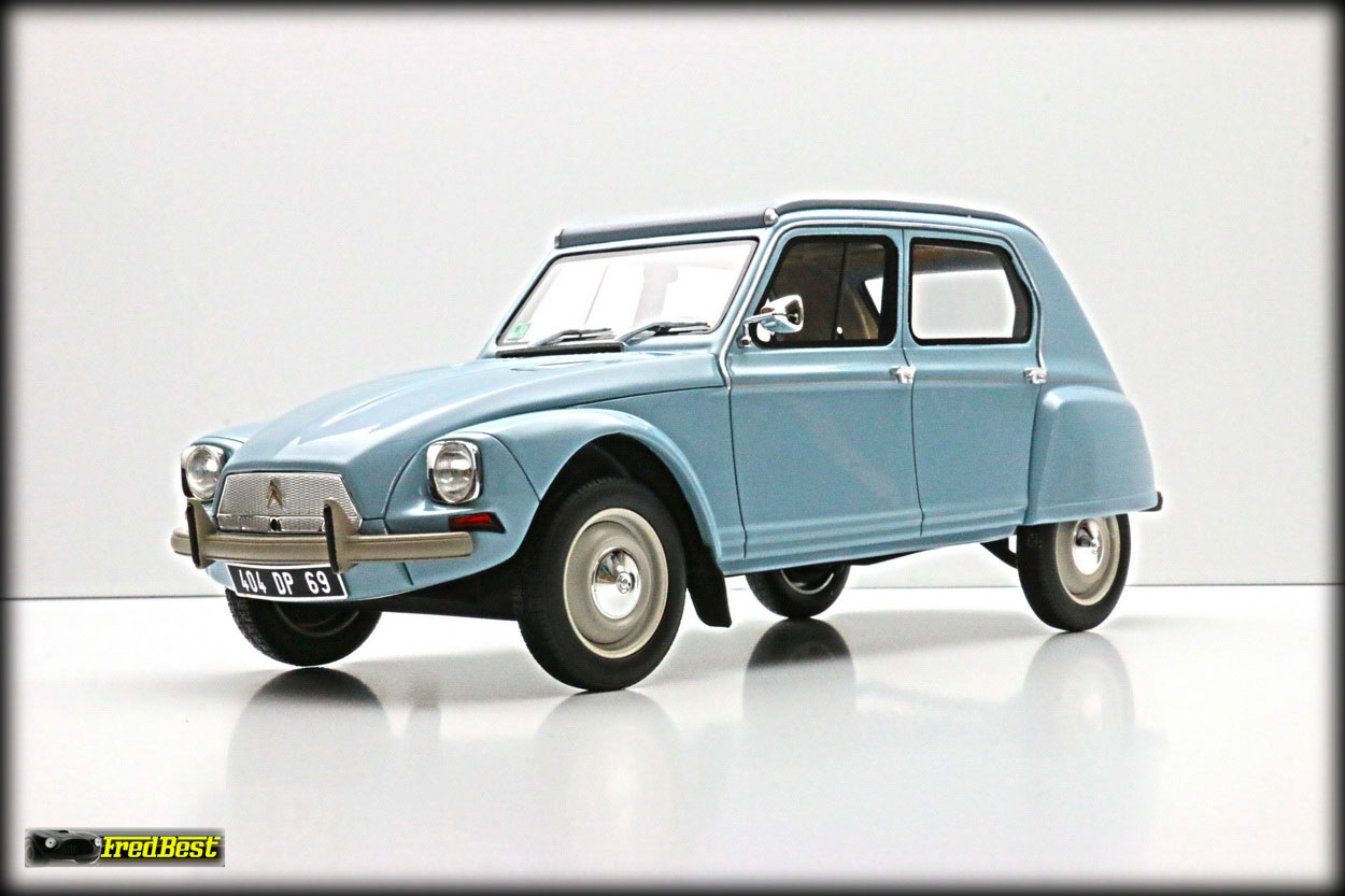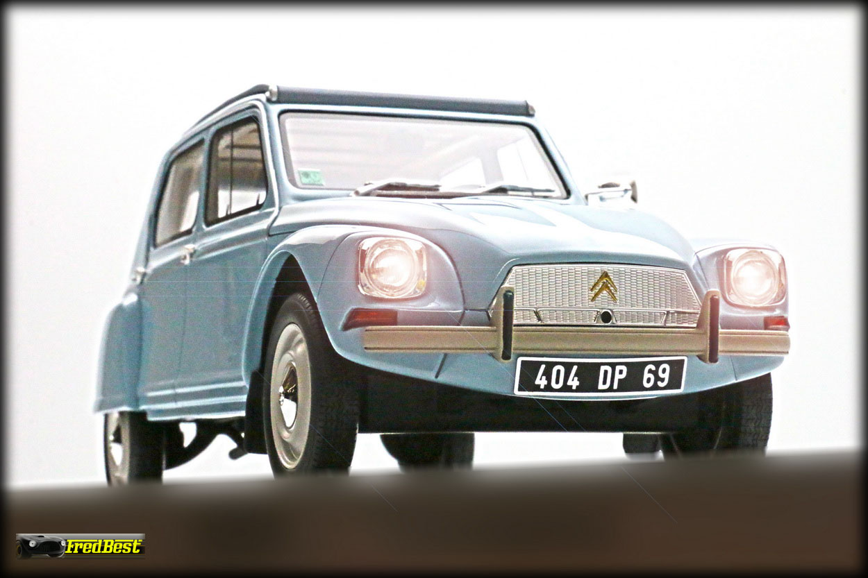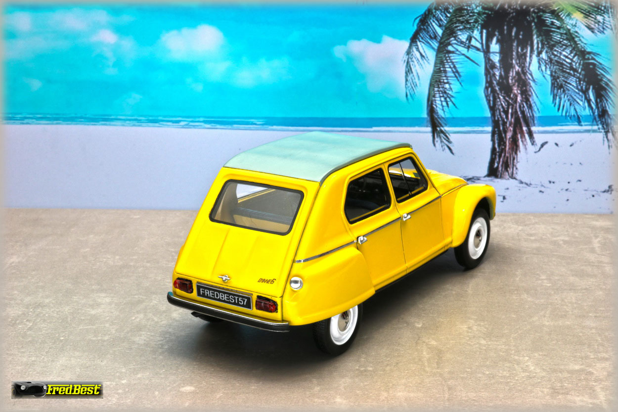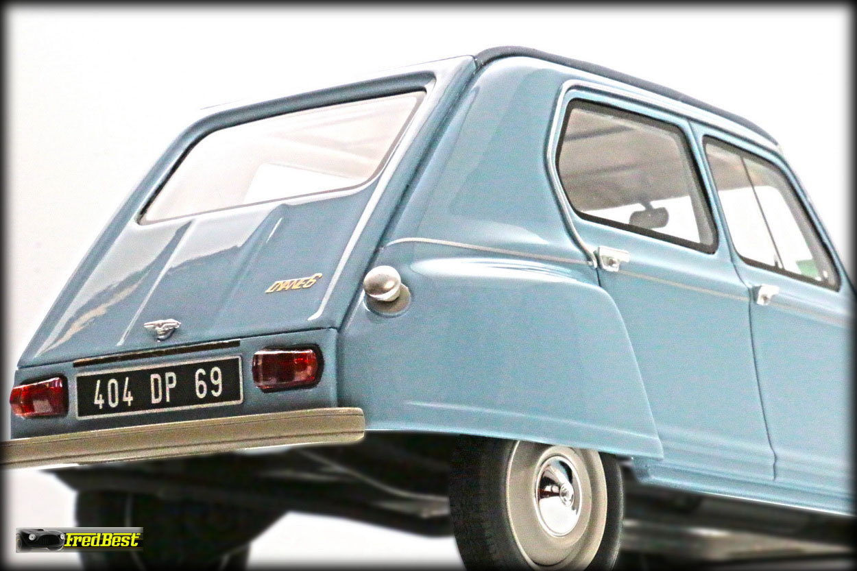 Acquise pour être repeinte en jaune, cette Dyane 6 réalisée par OttOmobile, deviendra la réplique de celle que je restaure au 1/1.