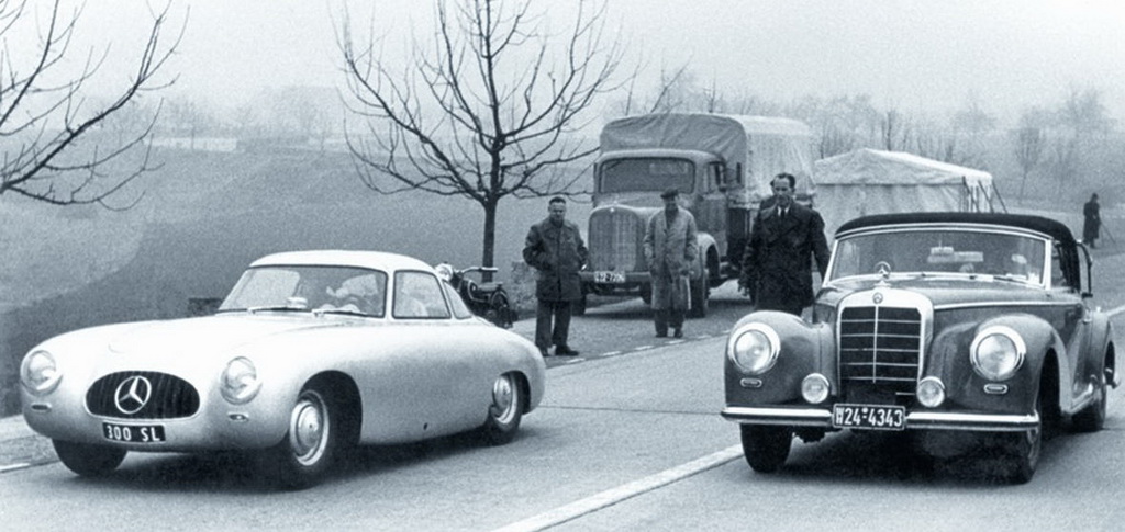 Désireux de revenir à la compétition automobile, Mercedes-Benz présente le 12 mars 1952, sur l'autoroute reliant Stuttgart à Heilbronn, la 300 SL " W194". Conçue autour d'un châssis